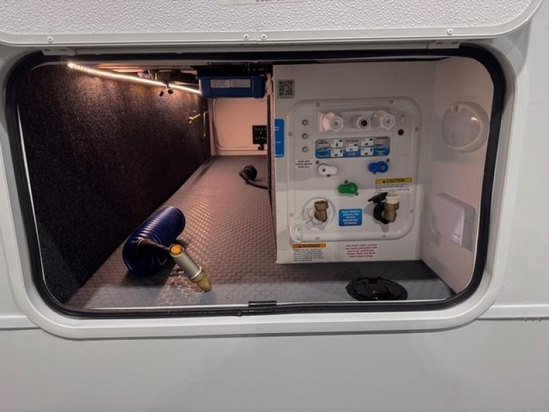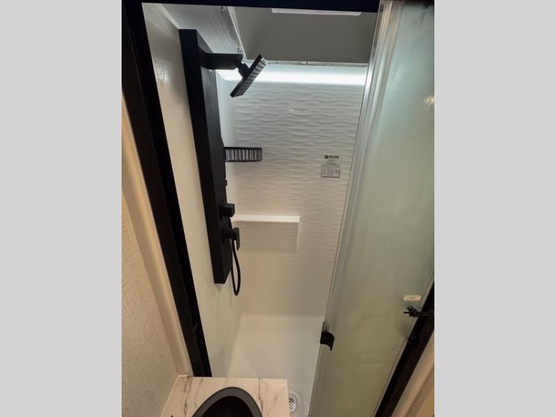 The Model Ix by Brinkley is your ticket to lightweight towing and exceptional features. This premium half-ton towable travel trailer features Brinkley's CraftSense building materials for a higher level of construction, along with a seamless laminated aluminum exterior with automotive grade full-body paint and modern graphics. You will stay powered up thanks to the power package with a 200-watt solar panel, and the Road Armor suspension will help provide a smooth tow from home to campground. The interior of the Model Ix includes premium residential cabinets with dovetail drawers, an ultra quiet and efficient A/C system, and a SoundCore Boom 2 Bluetooth waterproof speaker so you can listen to your favorite tunes indoors or outdoors!