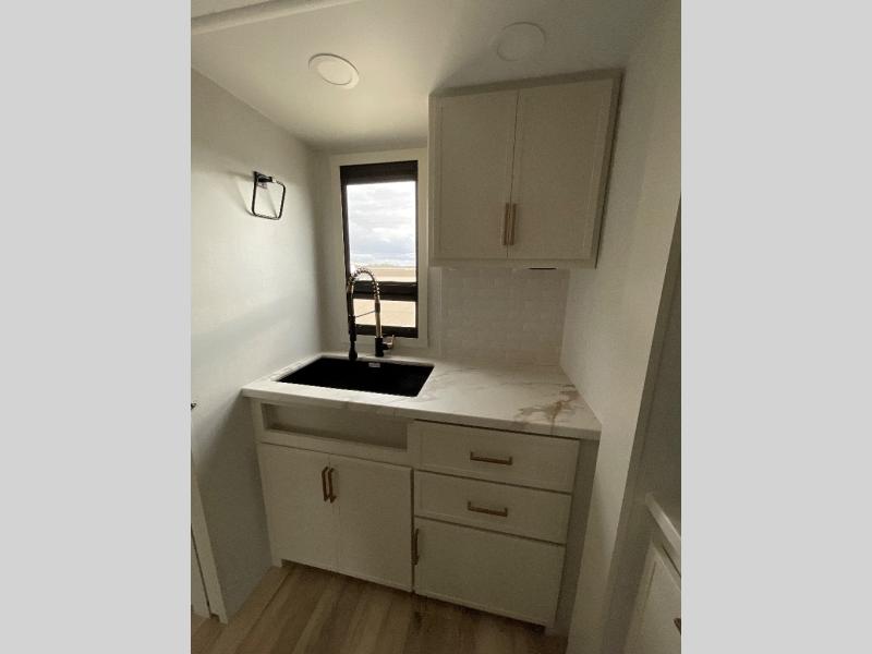 The Model Ix by Brinkley is your ticket to lightweight towing and exceptional features. This premium half-ton towable travel trailer features Brinkley's CraftSense building materials for a higher level of construction, along with a seamless laminated aluminum exterior with automotive grade full-body paint and modern graphics. You will stay powered up thanks to the power package with a 200-watt solar panel, and the Road Armor suspension will help provide a smooth tow from home to campground. The interior of the Model Ix includes premium residential cabinets with dovetail drawers, an ultra quiet and efficient A/C system, and a SoundCore Boom 2 Bluetooth waterproof speaker so you can listen to your favorite tunes indoors or outdoors!