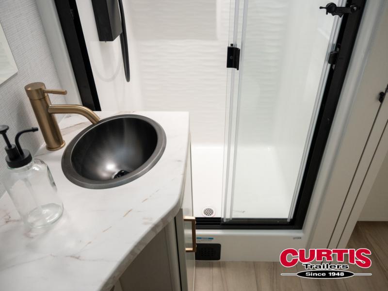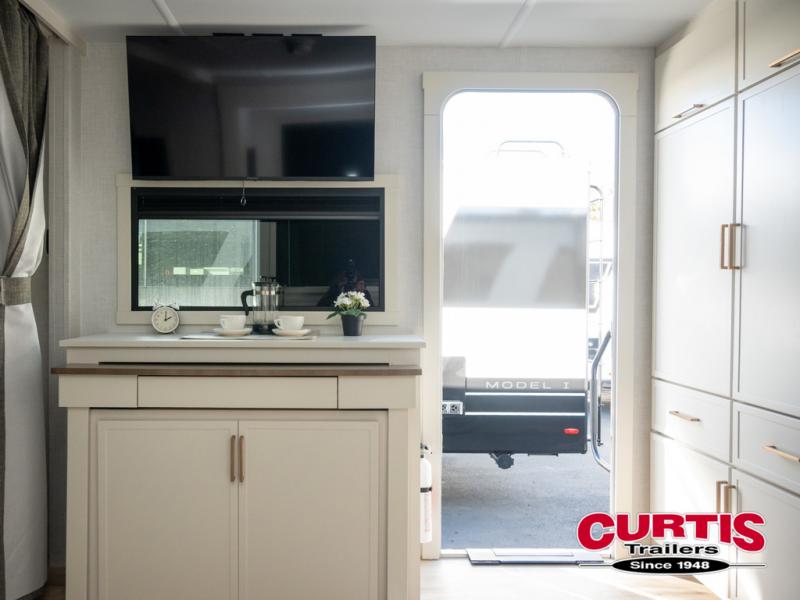 The Model Ix by Brinkley is your ticket to lightweight towing and exceptional features. This premium half-ton towable travel trailer features Brinkley's CraftSense building materials for a higher level of construction, along with a seamless laminated aluminum exterior with automotive grade full-body paint and modern graphics. You will stay powered up thanks to the power package with a 200-watt solar panel, and the Road Armor suspension will help provide a smooth tow from home to campground. The interior of the Model Ix includes premium residential cabinets with dovetail drawers, an ultra quiet and efficient A/C system, and a SoundCore Boom 2 Bluetooth waterproof speaker so you can listen to your favorite tunes indoors or outdoors!