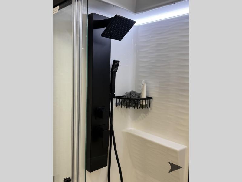 The Model Ix by Brinkley is your ticket to lightweight towing and exceptional features. This premium half-ton towable travel trailer features Brinkley's CraftSense building materials for a higher level of construction, along with a seamless laminated aluminum exterior with automotive grade full-body paint and modern graphics. You will stay powered up thanks to the power package with a 200-watt solar panel, and the Road Armor suspension will help provide a smooth tow from home to campground. The interior of the Model Ix includes premium residential cabinets with dovetail drawers, an ultra quiet and efficient A/C system, and a SoundCore Boom 2 Bluetooth waterproof speaker so you can listen to your favorite tunes indoors or outdoors!