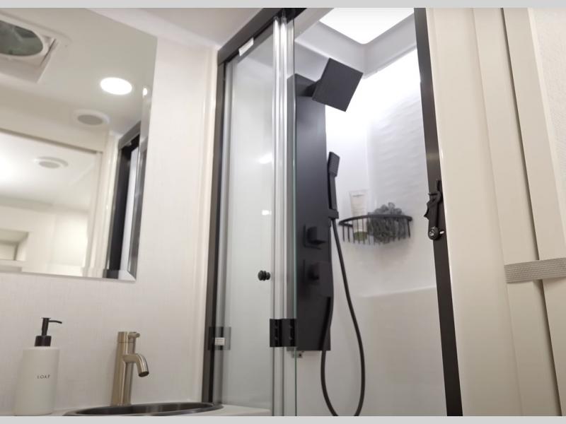 The Model Ix by Brinkley is your ticket to lightweight towing and exceptional features. This premium half-ton towable travel trailer features Brinkley's CraftSense building materials for a higher level of construction, along with a seamless laminated aluminum exterior with automotive grade full-body paint and modern graphics. You will stay powered up thanks to the power package with a 200-watt solar panel, and the Road Armor suspension will help provide a smooth tow from home to campground. The interior of the Model Ix includes premium residential cabinets with dovetail drawers, an ultra quiet and efficient A/C system, and a SoundCore Boom 2 Bluetooth waterproof speaker so you can listen to your favorite tunes indoors or outdoors!