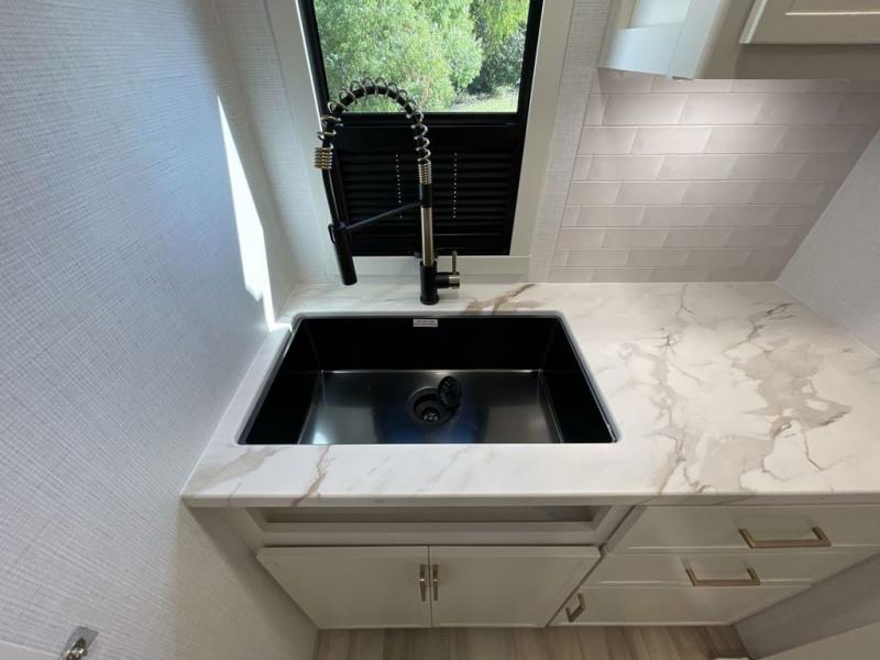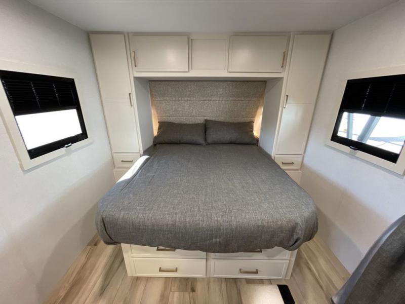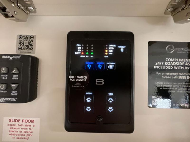 The Model Ix by Brinkley is your ticket to lightweight towing and exceptional features. This premium half-ton towable travel trailer features Brinkley's CraftSense building materials for a higher level of construction, along with a seamless laminated aluminum exterior with automotive grade full-body paint and modern graphics. You will stay powered up thanks to the power package with a 200-watt solar panel, and the Road Armor suspension will help provide a smooth tow from home to campground. The interior of the Model Ix includes premium residential cabinets with dovetail drawers, an ultra quiet and efficient A/C system, and a SoundCore Boom 2 Bluetooth waterproof speaker so you can listen to your favorite tunes indoors or outdoors!