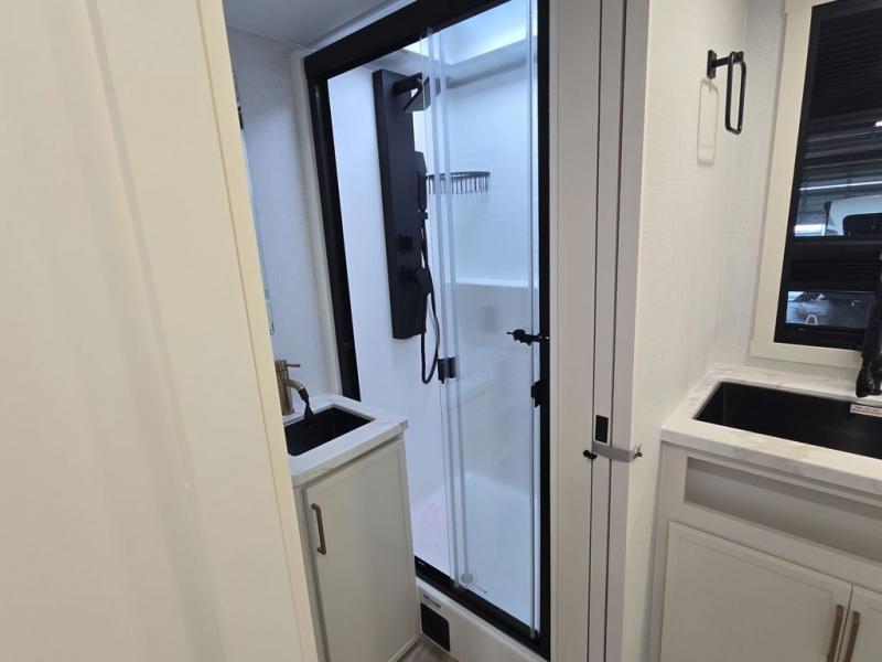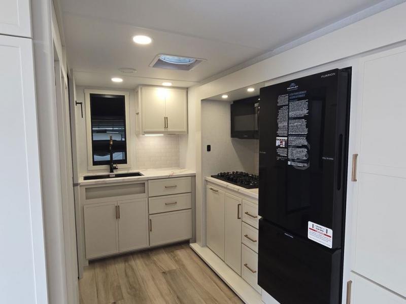 The Model Ix by Brinkley is your ticket to lightweight towing and exceptional features. This premium half-ton towable travel trailer features Brinkley's CraftSense building materials for a higher level of construction, along with a seamless laminated aluminum exterior with automotive grade full-body paint and modern graphics. You will stay powered up thanks to the power package with a 200-watt solar panel, and the Road Armor suspension will help provide a smooth tow from home to campground. The interior of the Model Ix includes premium residential cabinets with dovetail drawers, an ultra quiet and efficient A/C system, and a SoundCore Boom 2 Bluetooth waterproof speaker so you can listen to your favorite tunes indoors or outdoors!