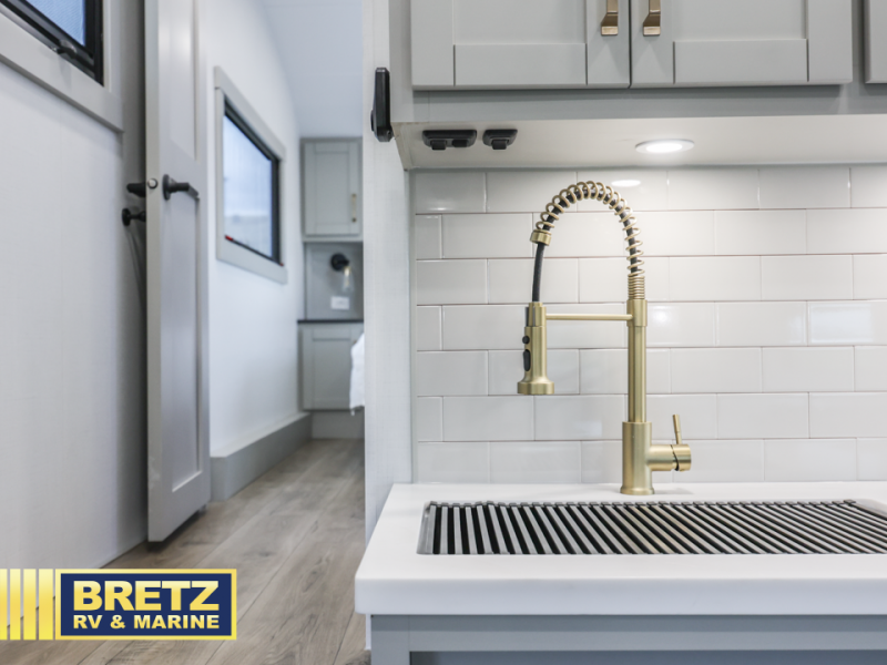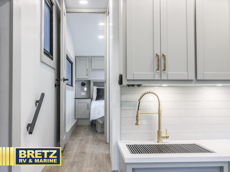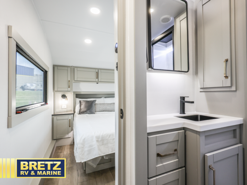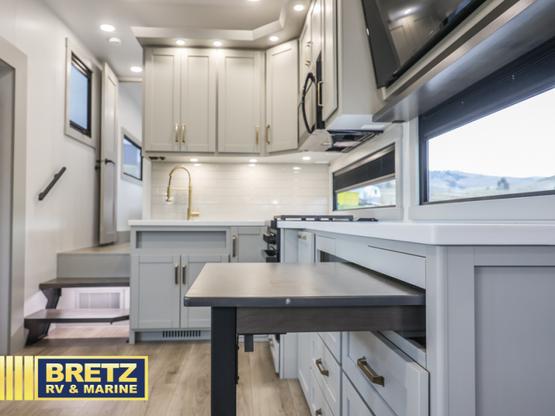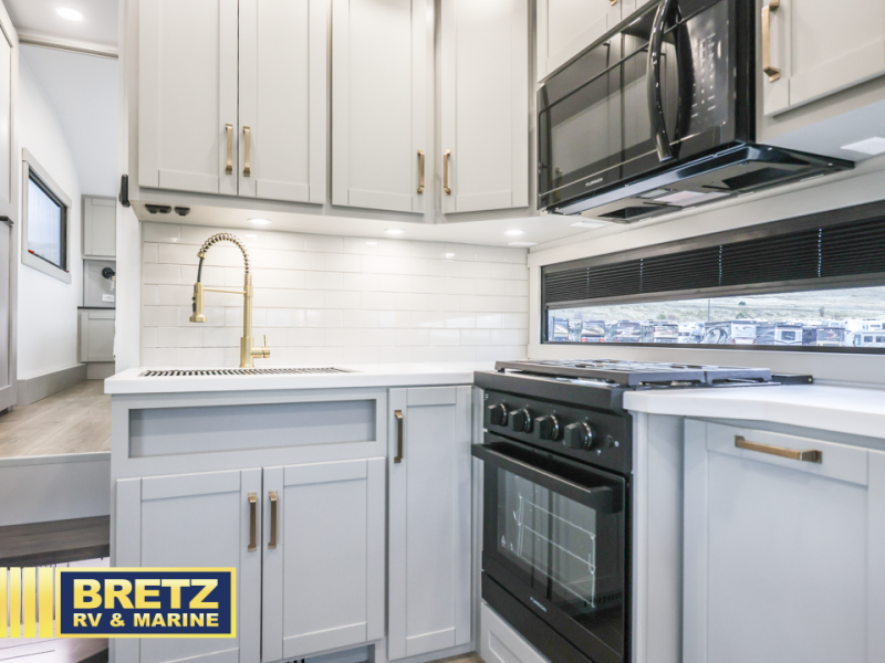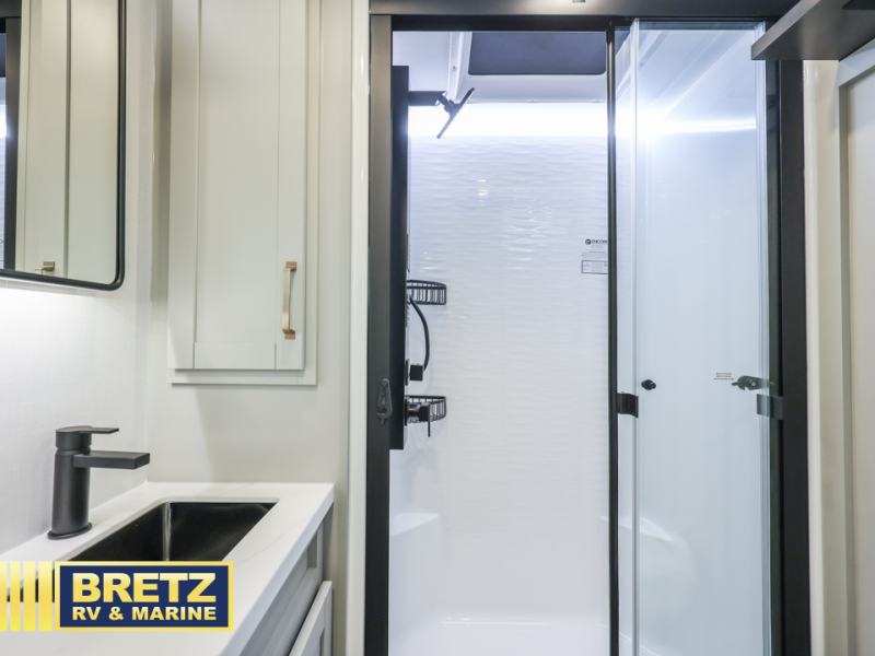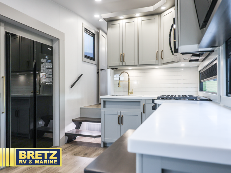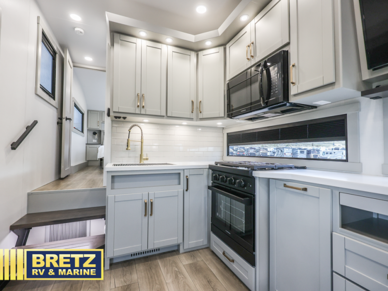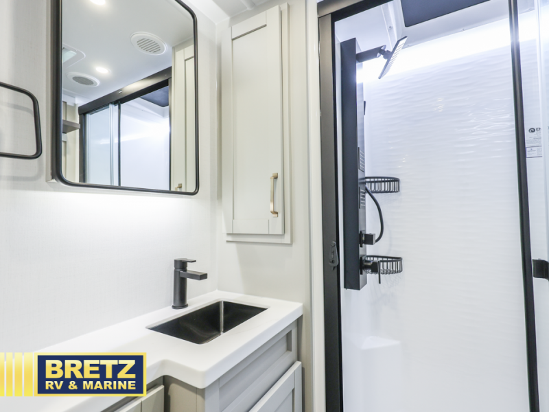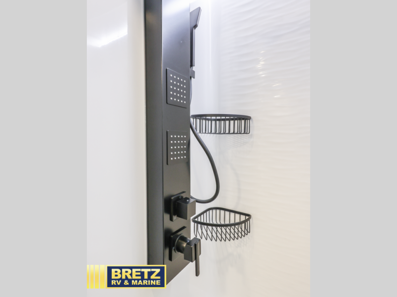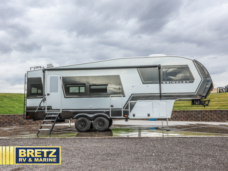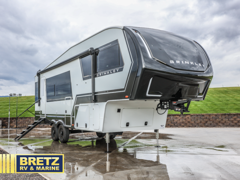 The Brinkley mid-profile Model Z fifth wheels bring you clean lines and an upscale look with plenty of style and exciting new features like the industry first brass plumbing connections. These units also feature an automotive grade front cap, plenty of exterior storage, dual exterior hot and cold showers, and wide stance leveling jacks for easy set up. Residential frameless windows provide a clean look and beautiful views, and ample electrical outlets and USB/USB-C outlets allow all of your electronics and appliances to easily be used and charged.