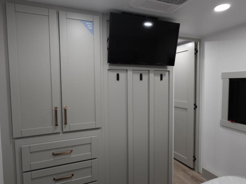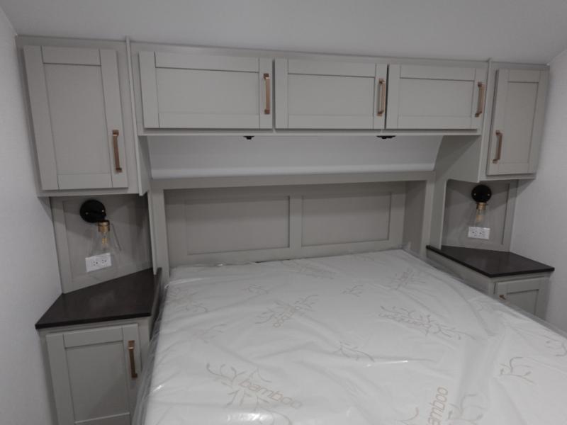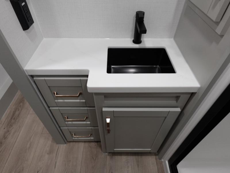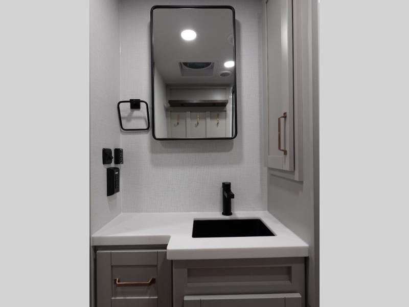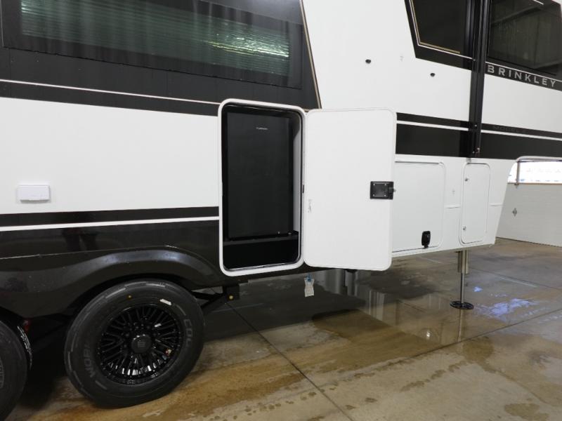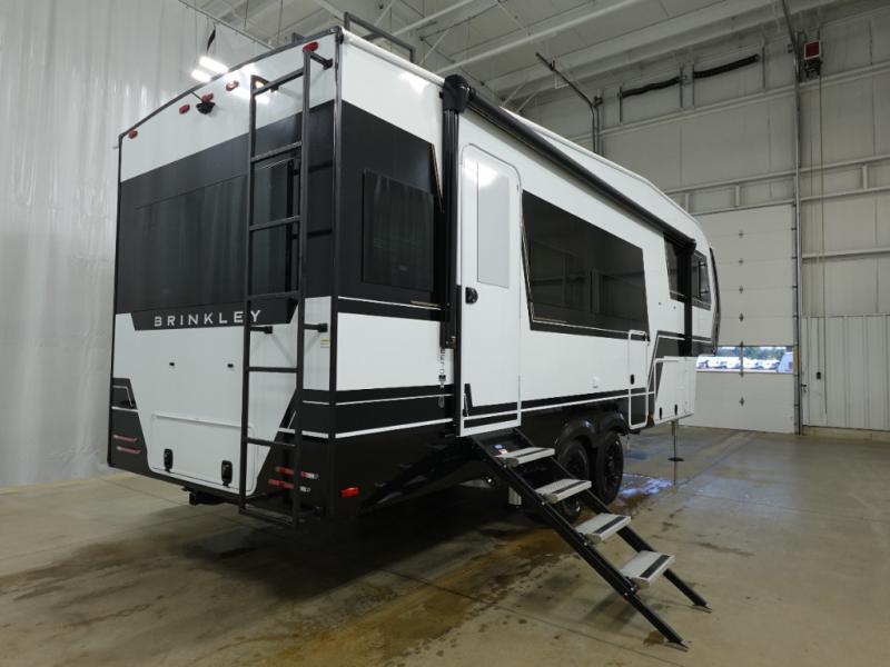 The Brinkley mid-profile Model Z fifth wheels bring you clean lines and an upscale look with plenty of style and exciting new features like the industry first brass plumbing connections. These units also feature an automotive grade front cap, plenty of exterior storage, dual exterior hot and cold showers, and wide stance leveling jacks for easy set up. Residential frameless windows provide a clean look and beautiful views, and ample electrical outlets and USB/USB-C outlets allow all of your electronics and appliances to easily be used and charged.