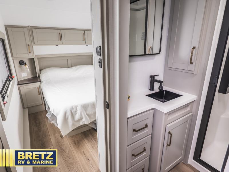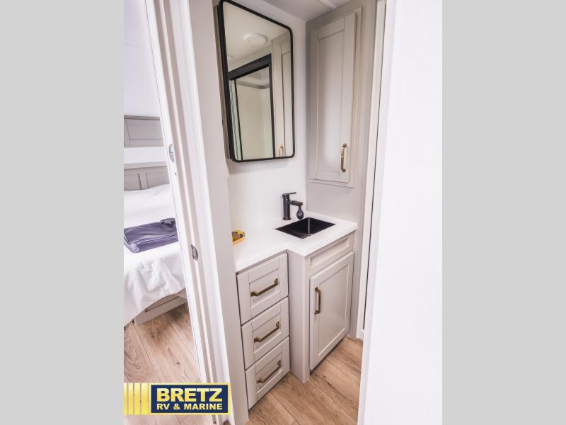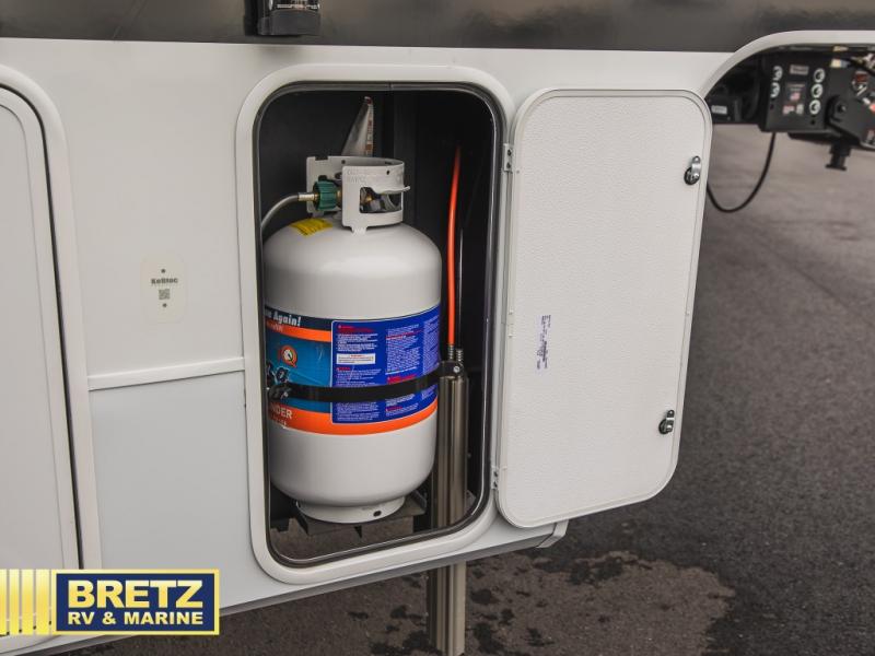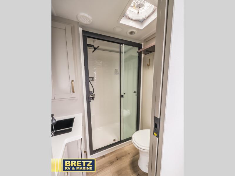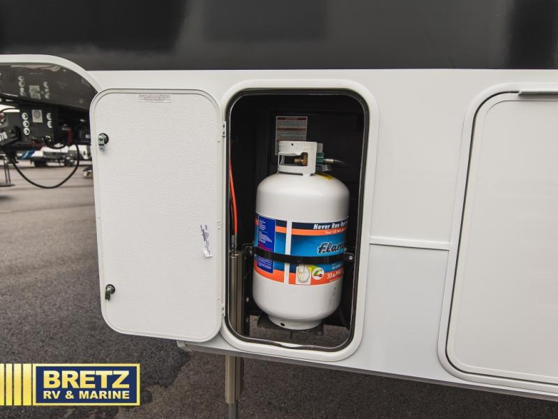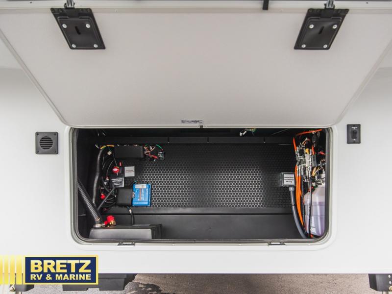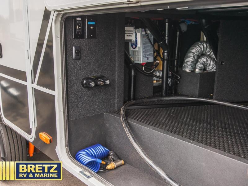 The Brinkley mid-profile Model Z fifth wheels bring you clean lines and an upscale look with plenty of style and exciting new features like the industry first brass plumbing connections. These units also feature an automotive grade front cap, plenty of exterior storage, dual exterior hot and cold showers, and wide stance leveling jacks for easy set up. Residential frameless windows provide a clean look and beautiful views, and ample electrical outlets and USB/USB-C outlets allow all of your electronics and appliances to easily be used and charged.