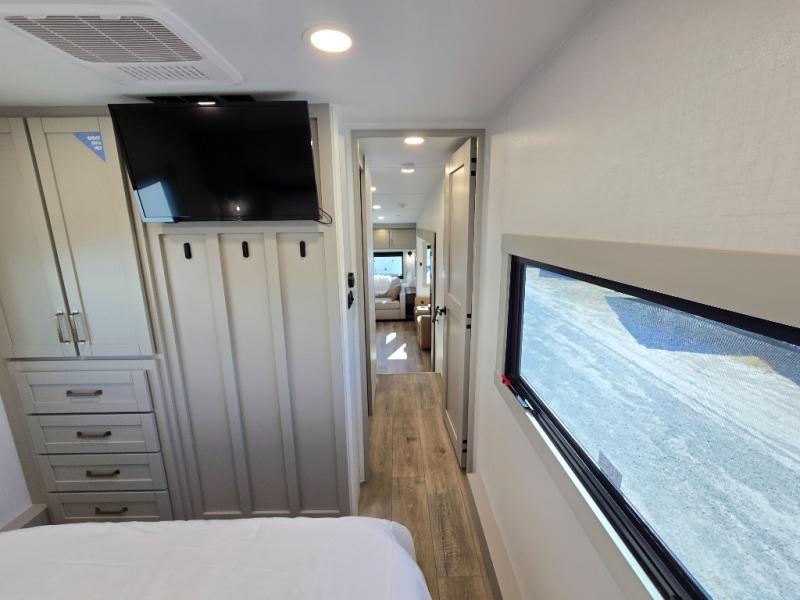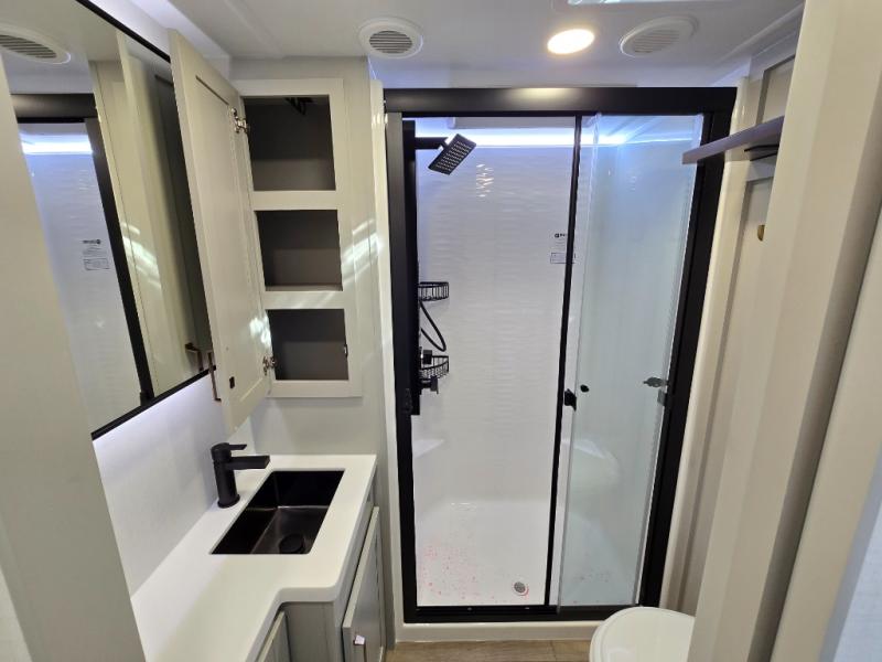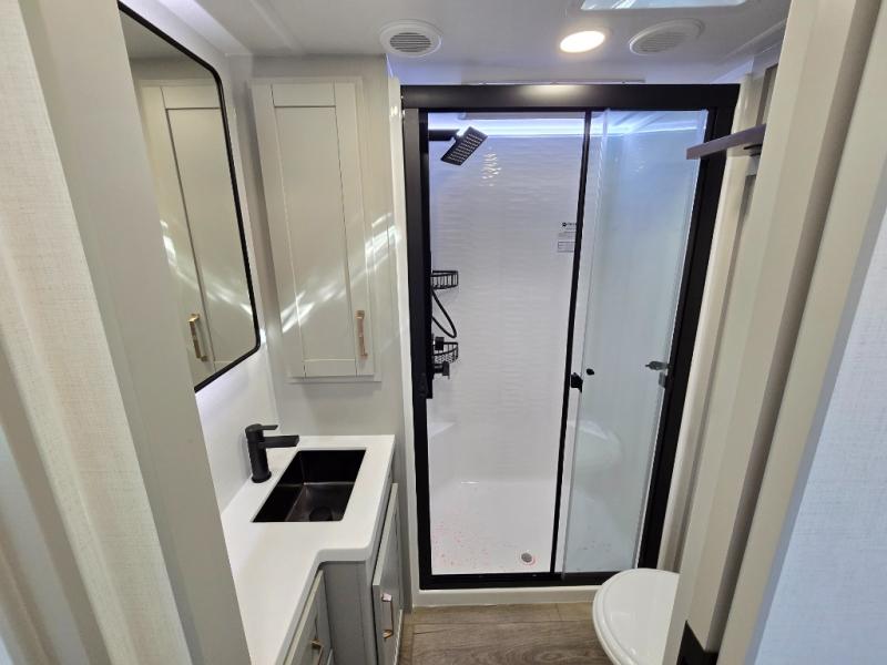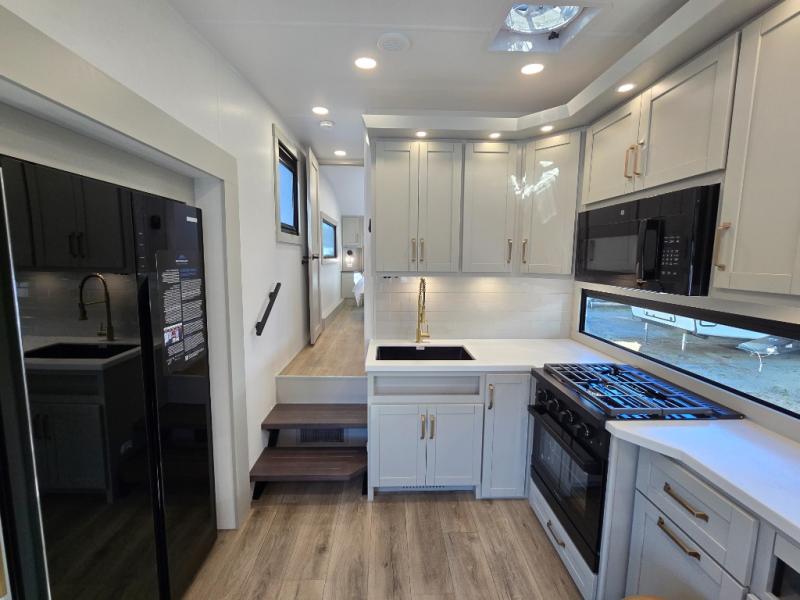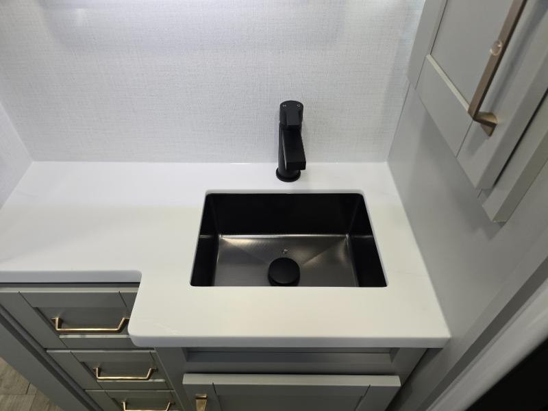 The Brinkley mid-profile Model Z fifth wheels bring you clean lines and an upscale look with plenty of style and exciting new features like the industry first brass plumbing connections. These units also feature an automotive grade front cap, plenty of exterior storage, dual exterior hot and cold showers, and wide stance leveling jacks for easy set up. Residential frameless windows provide a clean look and beautiful views, and ample electrical outlets and USB/USB-C outlets allow all of your electronics and appliances to easily be used and charged.