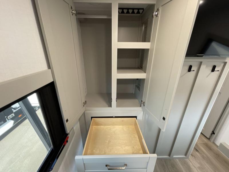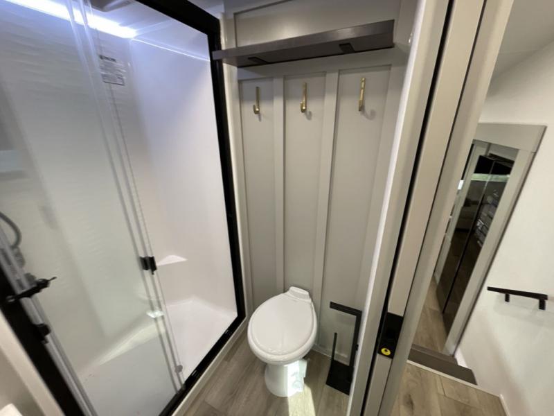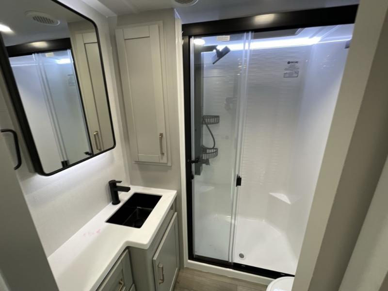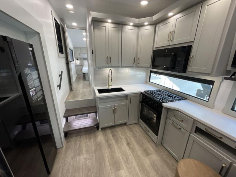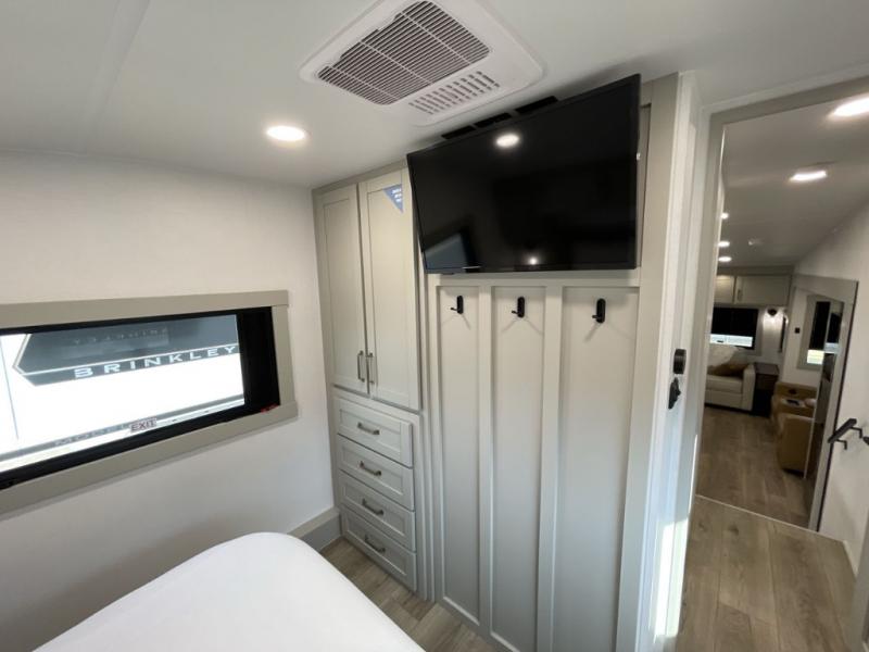 The Brinkley mid-profile Model Z fifth wheels bring you clean lines and an upscale look with plenty of style and exciting new features like the industry first brass plumbing connections. These units also feature an automotive grade front cap, plenty of exterior storage, dual exterior hot and cold showers, and wide stance leveling jacks for easy set up. Residential frameless windows provide a clean look and beautiful views, and ample electrical outlets and USB/USB-C outlets allow all of your electronics and appliances to easily be used and charged.