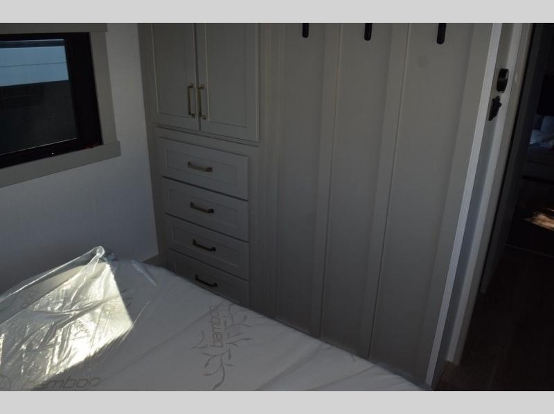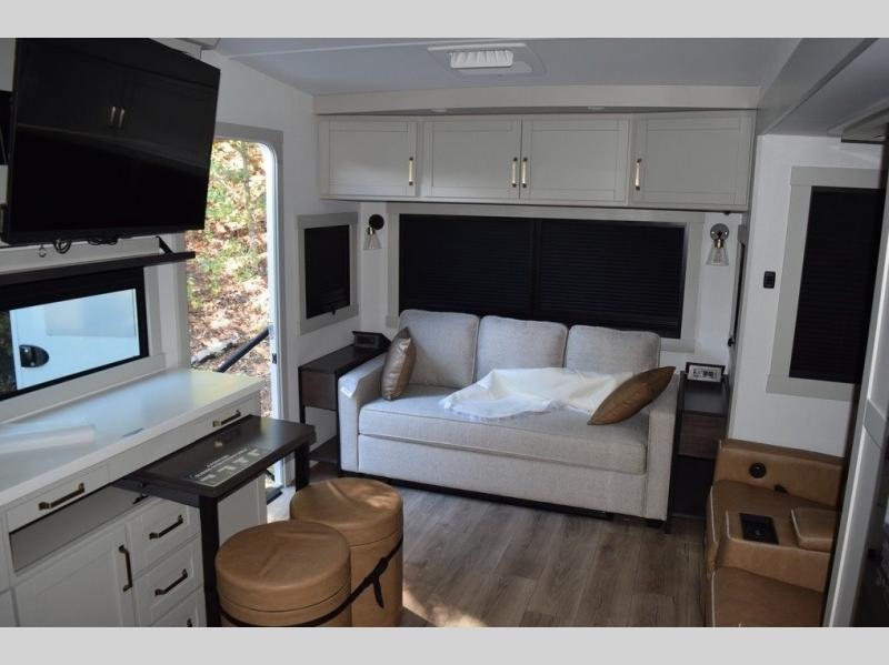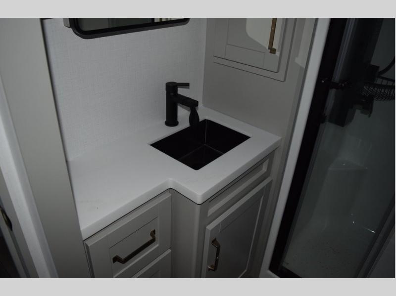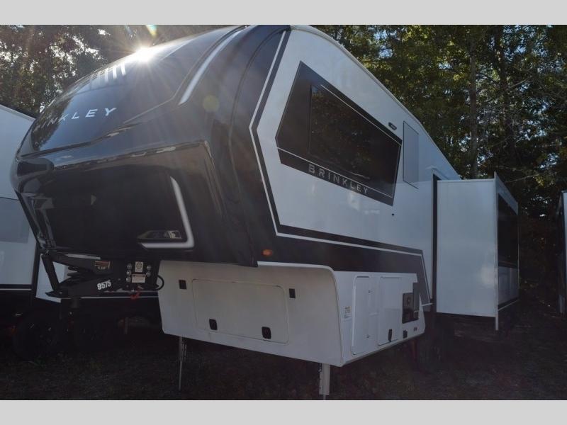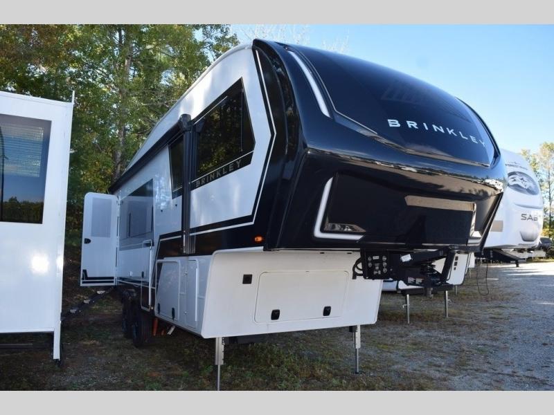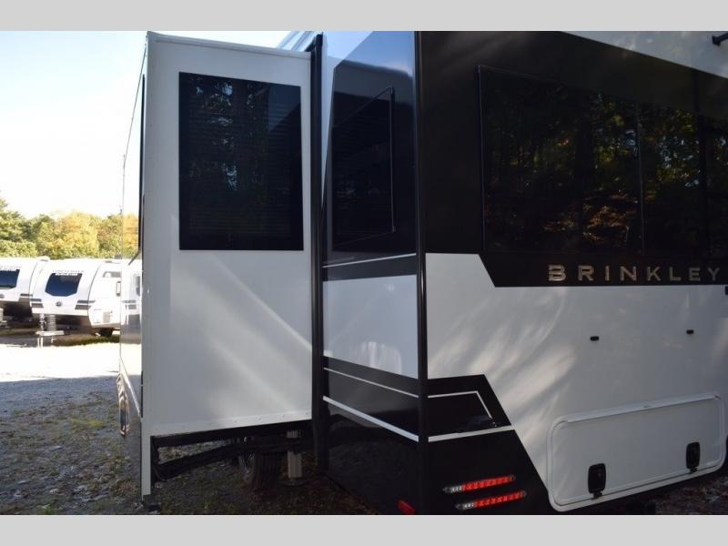 The Brinkley mid-profile Model Z fifth wheels bring you clean lines and an upscale look with plenty of style and exciting new features like the industry first brass plumbing connections. These units also feature an automotive grade front cap, plenty of exterior storage, dual exterior hot and cold showers, and wide stance leveling jacks for easy set up. Residential frameless windows provide a clean look and beautiful views, and ample electrical outlets and USB/USB-C outlets allow all of your electronics and appliances to easily be used and charged.