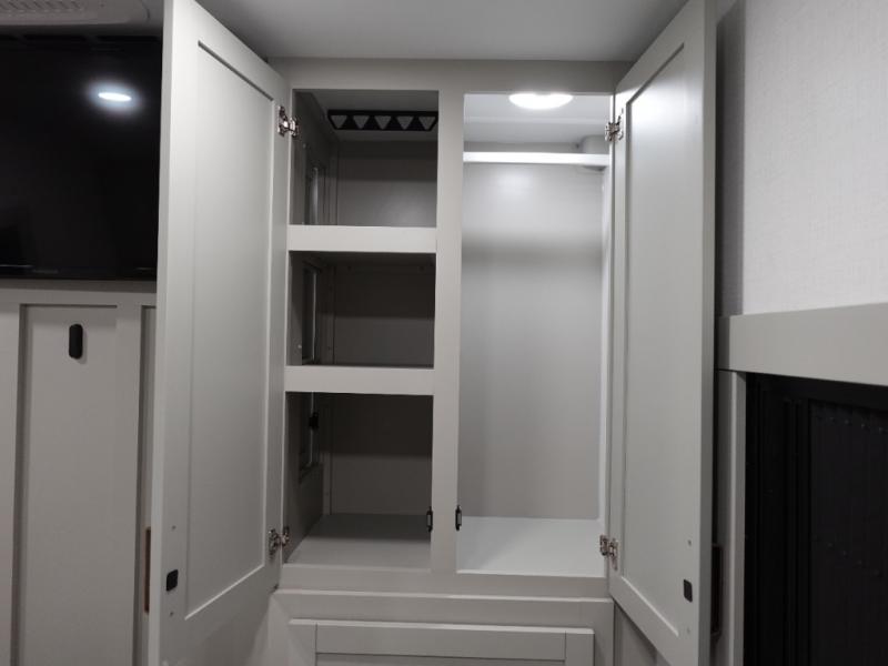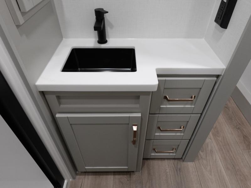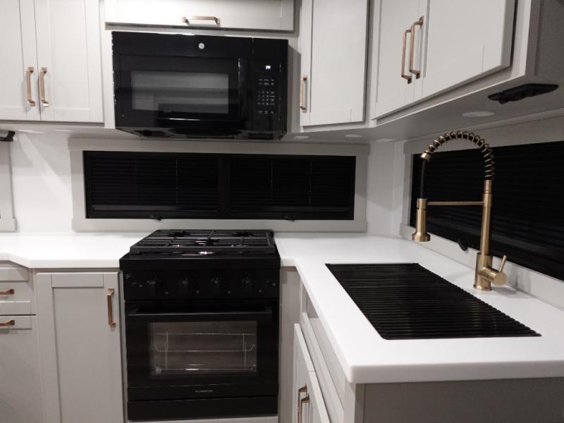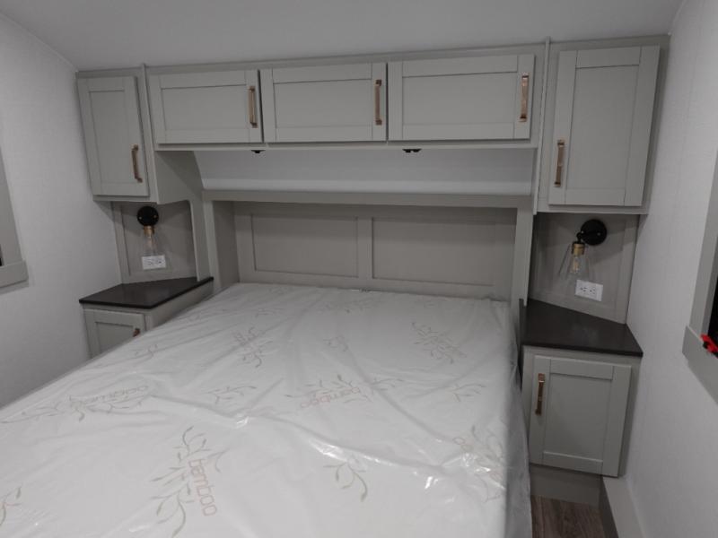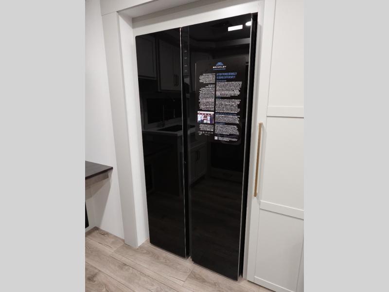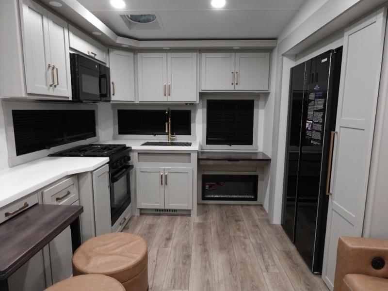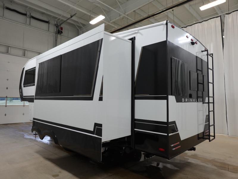 The Brinkley mid-profile Model Z fifth wheels bring you clean lines and an upscale look with plenty of style and exciting new features like the industry first brass plumbing connections. These units also feature an automotive grade front cap, plenty of exterior storage, dual exterior hot and cold showers, and wide stance leveling jacks for easy set up. Residential frameless windows provide a clean look and beautiful views, and ample electrical outlets and USB/USB-C outlets allow all of your electronics and appliances to easily be used and charged.
