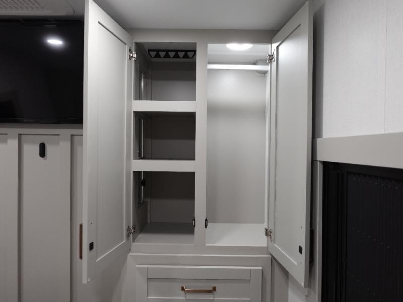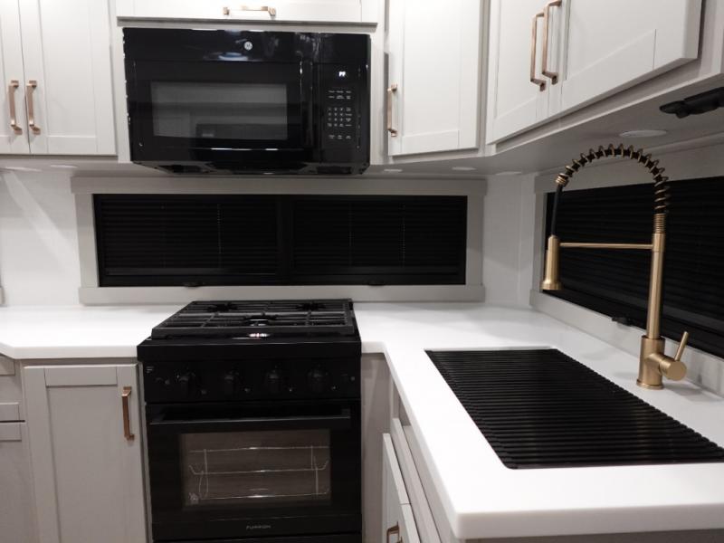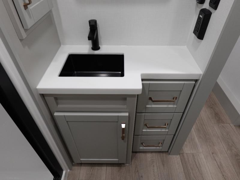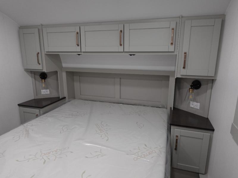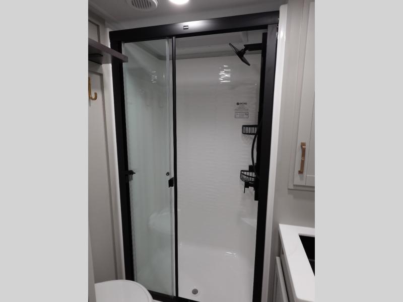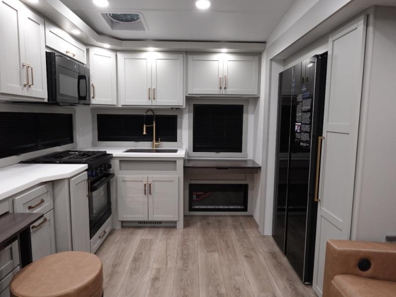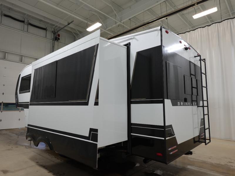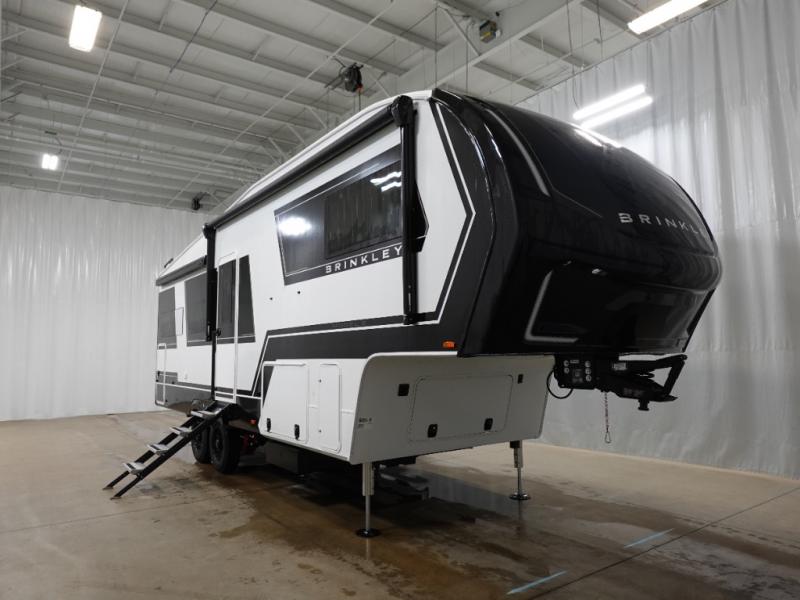 The Brinkley mid-profile Model Z fifth wheels bring you clean lines and an upscale look with plenty of style and exciting new features like the industry first brass plumbing connections. These units also feature an automotive grade front cap, plenty of exterior storage, dual exterior hot and cold showers, and wide stance leveling jacks for easy set up. Residential frameless windows provide a clean look and beautiful views, and ample electrical outlets and USB/USB-C outlets allow all of your electronics and appliances to easily be used and charged.