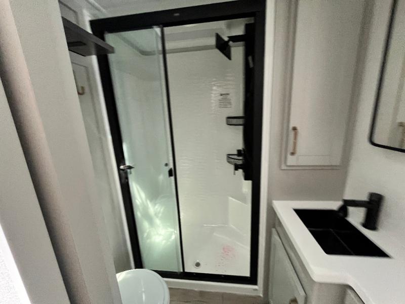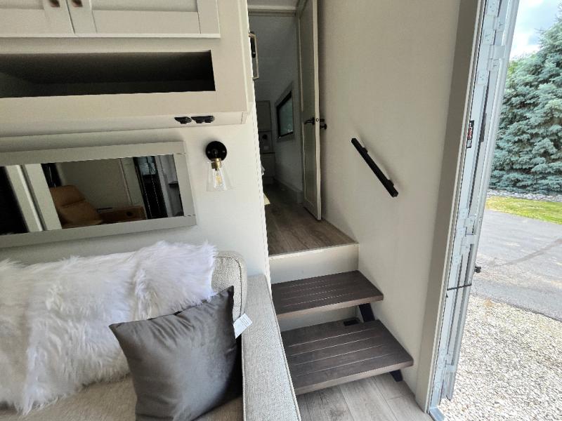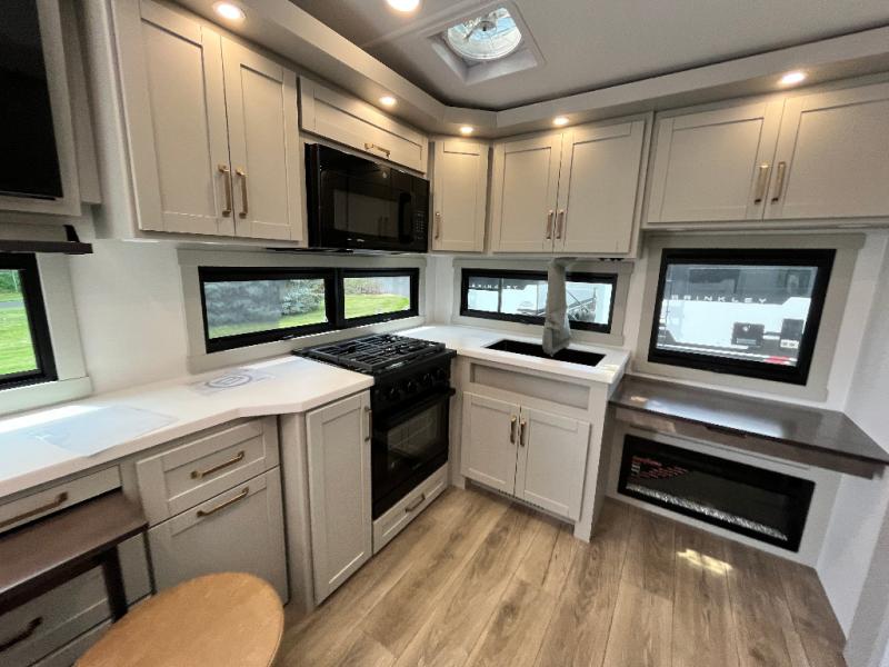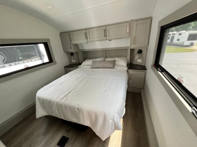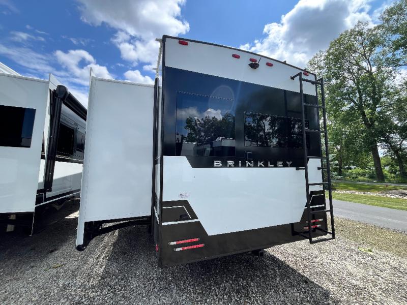 The Brinkley mid-profile Model Z fifth wheels bring you clean lines and an upscale look with plenty of style and exciting new features like the industry first brass plumbing connections. These units also feature an automotive grade front cap, plenty of exterior storage, dual exterior hot and cold showers, and wide stance leveling jacks for easy set up. Residential frameless windows provide a clean look and beautiful views, and ample electrical outlets and USB/USB-C outlets allow all of your electronics and appliances to easily be used and charged.