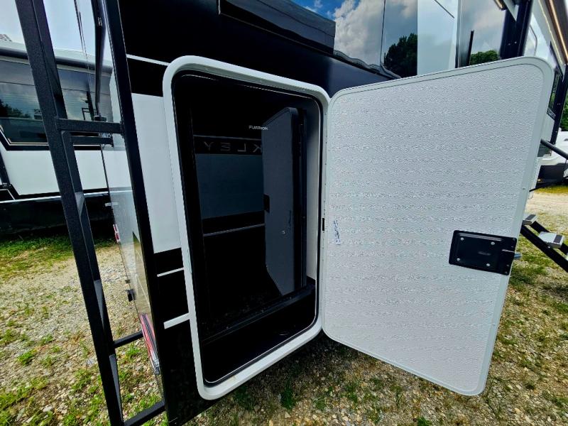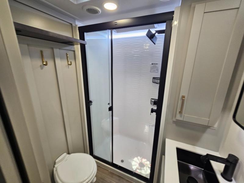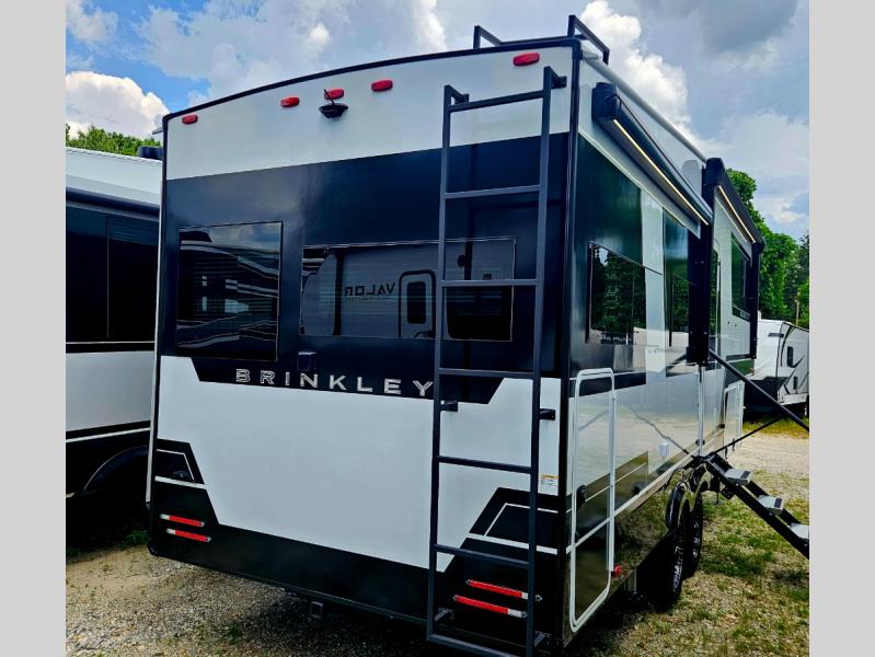 The Brinkley mid-profile Model Z fifth wheels bring you clean lines and an upscale look with plenty of style and exciting new features like the industry first brass plumbing connections. These units also feature an automotive grade front cap, plenty of exterior storage, dual exterior hot and cold showers, and wide stance leveling jacks for easy set up. Residential frameless windows provide a clean look and beautiful views, and ample electrical outlets and USB/USB-C outlets allow all of your electronics and appliances to easily be used and charged.