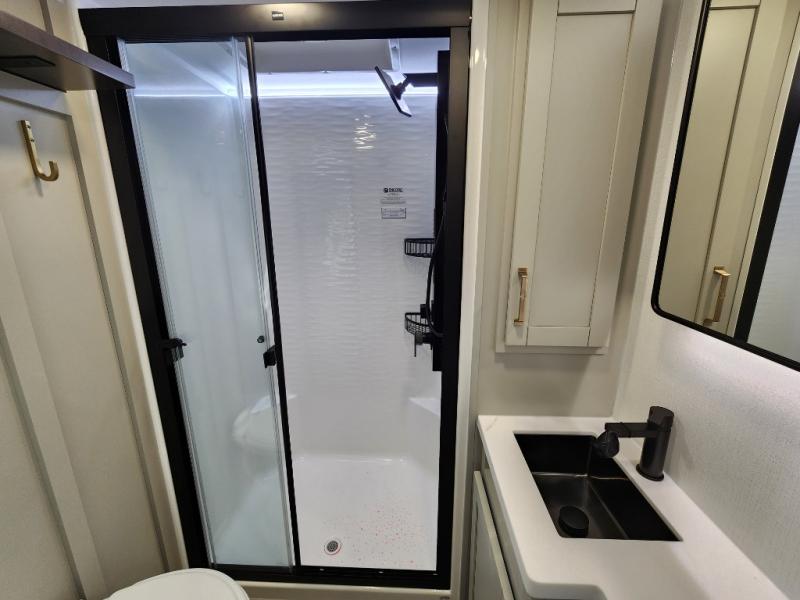 The Brinkley mid-profile Model Z fifth wheels bring you clean lines and an upscale look with plenty of style and exciting new features like the industry first brass plumbing connections. These units also feature an automotive grade front cap, plenty of exterior storage, dual exterior hot and cold showers, and wide stance leveling jacks for easy set up. Residential frameless windows provide a clean look and beautiful views, and ample electrical outlets and USB/USB-C outlets allow all of your electronics and appliances to easily be used and charged.