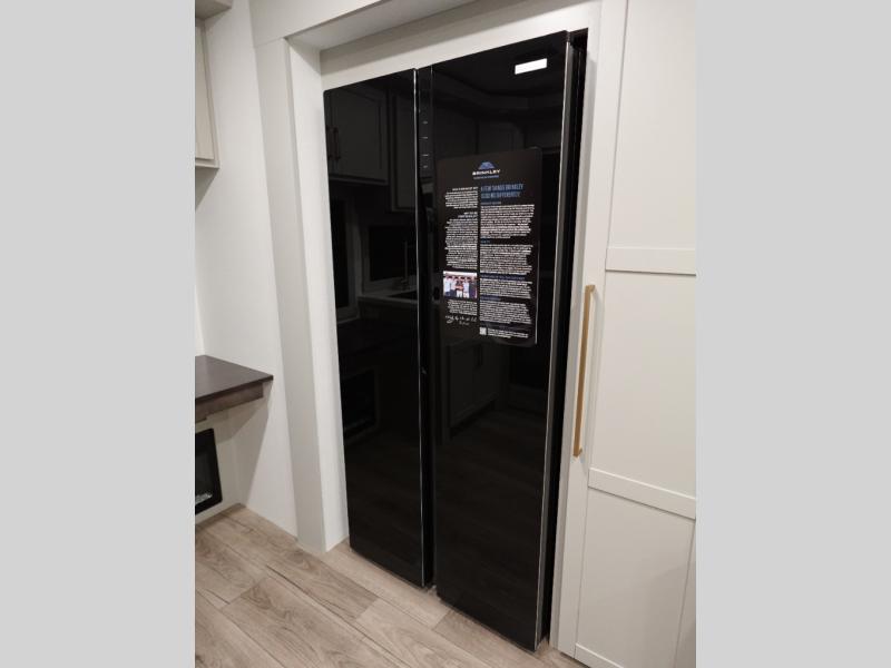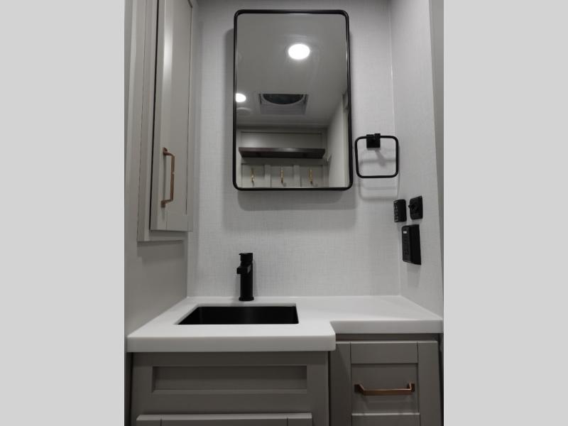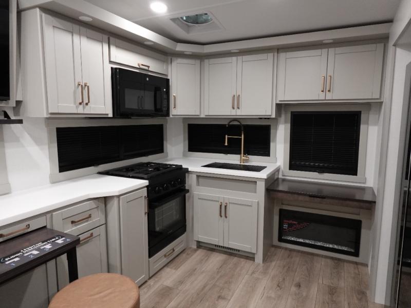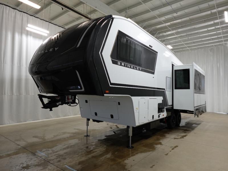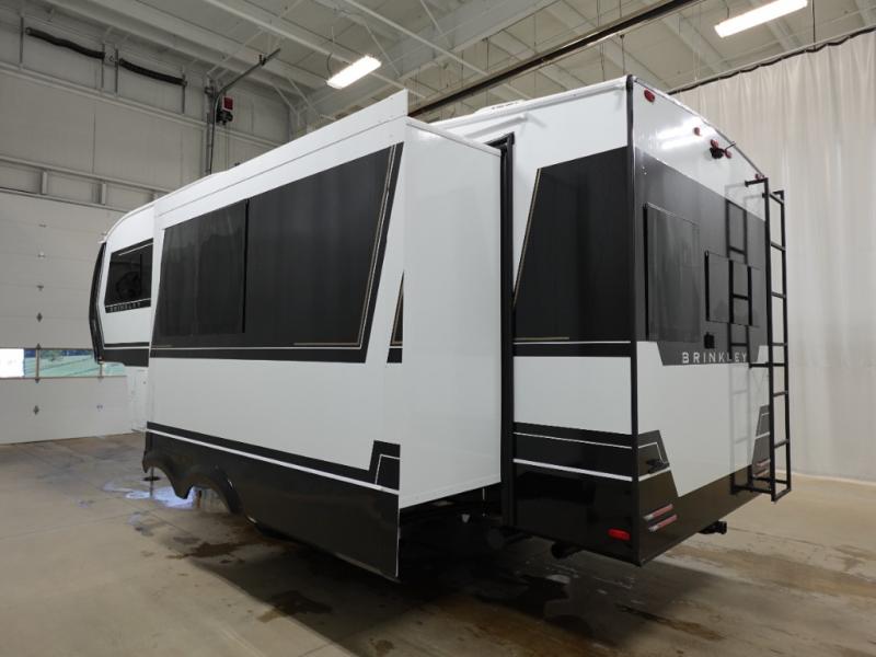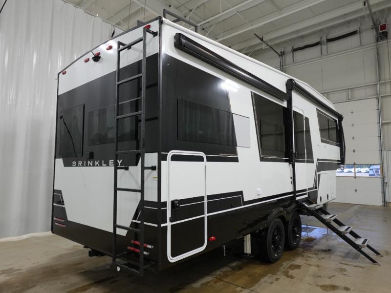 The Brinkley mid-profile Model Z fifth wheels bring you clean lines and an upscale look with plenty of style and exciting new features like the industry first brass plumbing connections. These units also feature an automotive grade front cap, plenty of exterior storage, dual exterior hot and cold showers, and wide stance leveling jacks for easy set up. Residential frameless windows provide a clean look and beautiful views, and ample electrical outlets and USB/USB-C outlets allow all of your electronics and appliances to easily be used and charged.
