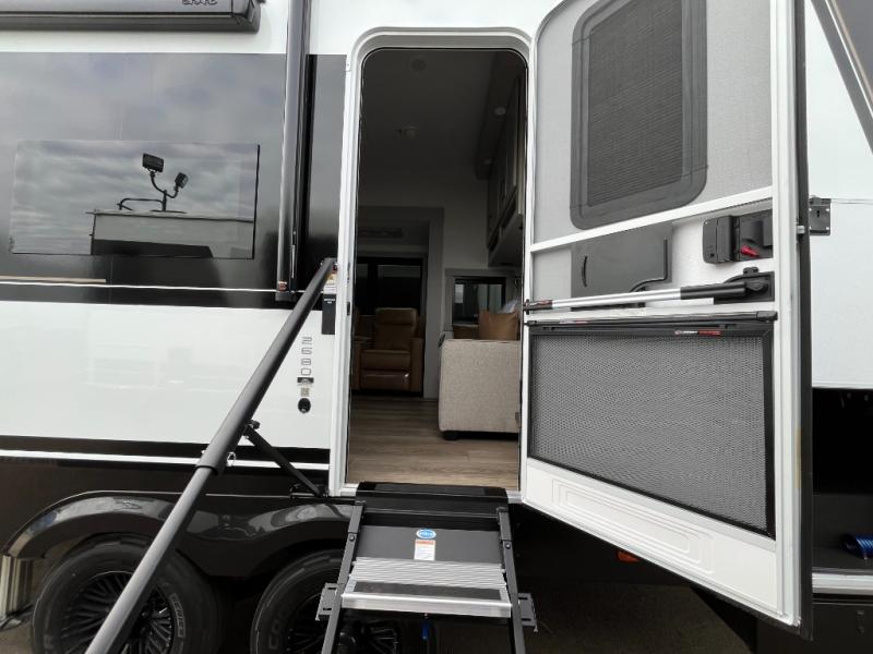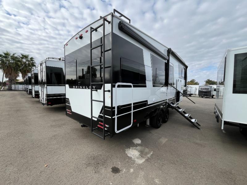 The Brinkley mid-profile Model Z fifth wheels bring you clean lines and an upscale look with plenty of style and exciting new features like the industry first brass plumbing connections. These units also feature an automotive grade front cap, plenty of exterior storage, dual exterior hot and cold showers, and wide stance leveling jacks for easy set up. Residential frameless windows provide a clean look and beautiful views, and ample electrical outlets and USB/USB-C outlets allow all of your electronics and appliances to easily be used and charged.