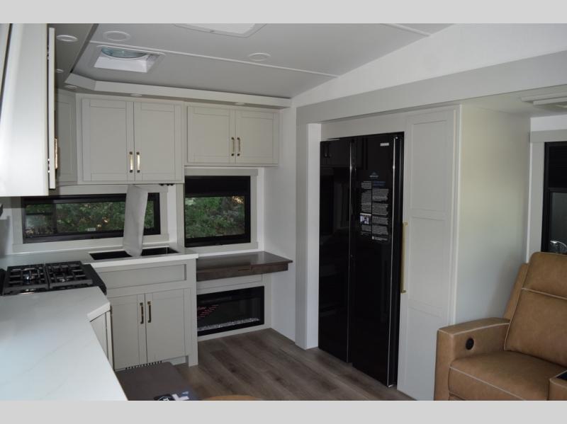 The Brinkley mid-profile Model Z fifth wheels bring you clean lines and an upscale look with plenty of style and exciting new features like the industry first brass plumbing connections. These units also feature an automotive grade front cap, plenty of exterior storage, dual exterior hot and cold showers, and wide stance leveling jacks for easy set up. Residential frameless windows provide a clean look and beautiful views, and ample electrical outlets and USB/USB-C outlets allow all of your electronics and appliances to easily be used and charged.