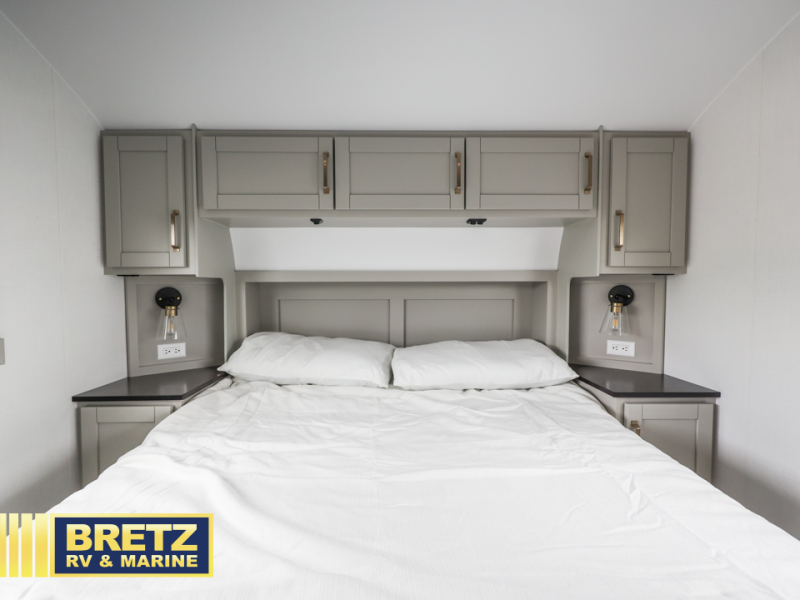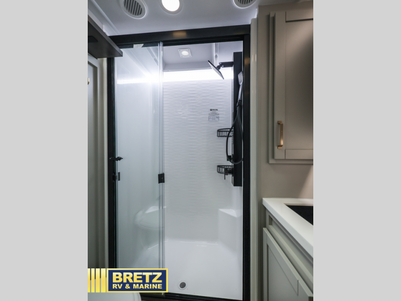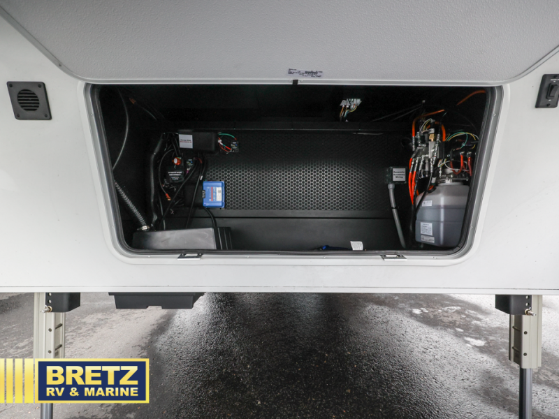The Brinkley mid-profile Model Z fifth wheels bring you clean lines and an upscale look with plenty of style and exciting new features like the industry first brass plumbing connections. These units also feature an automotive grade front cap, plenty of exterior storage, dual exterior hot and cold showers, and wide stance leveling jacks for easy set up. Residential frameless windows provide a clean look and beautiful views, and ample electrical outlets and USB/USB-C outlets allow all of your electronics and appliances to easily be used and charged.