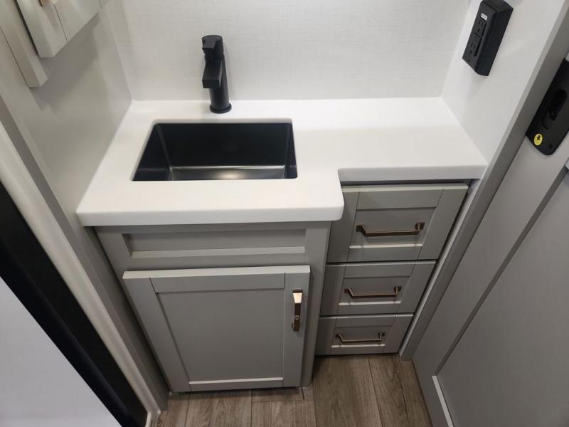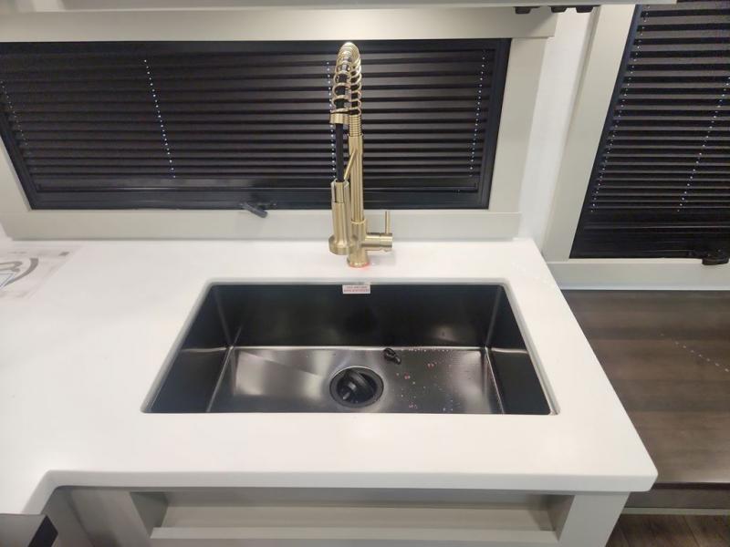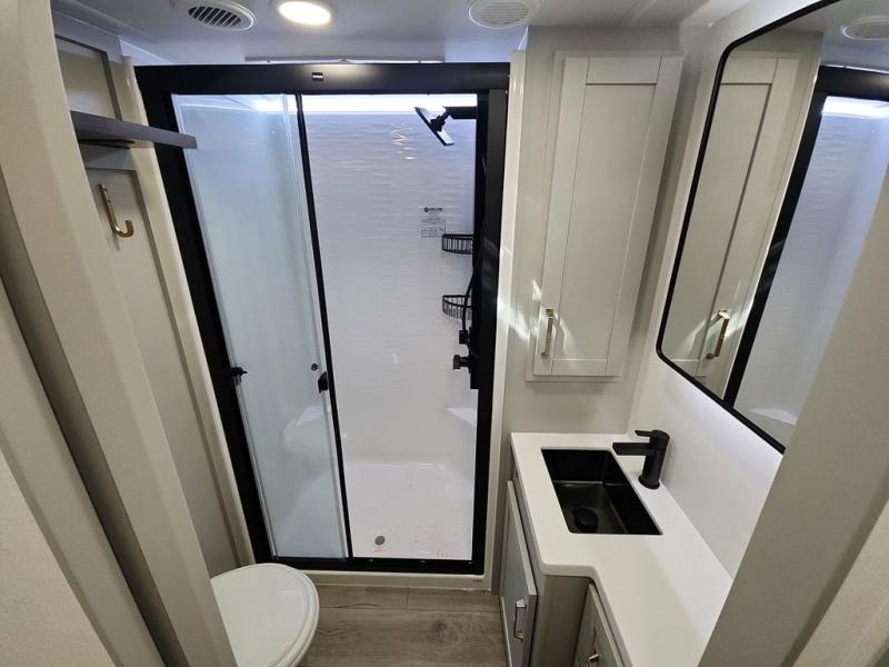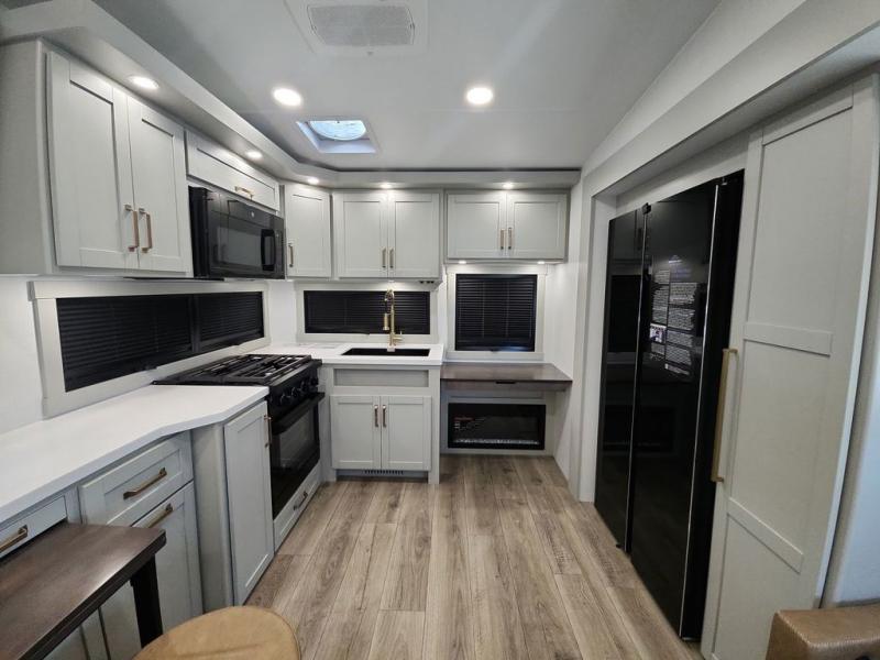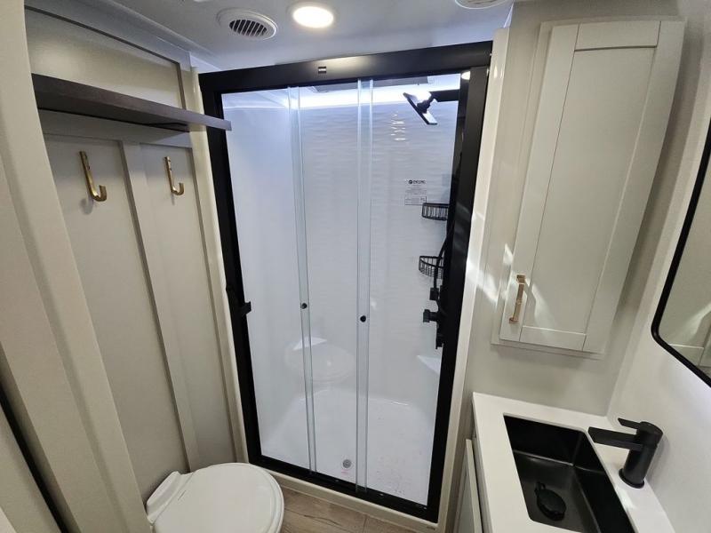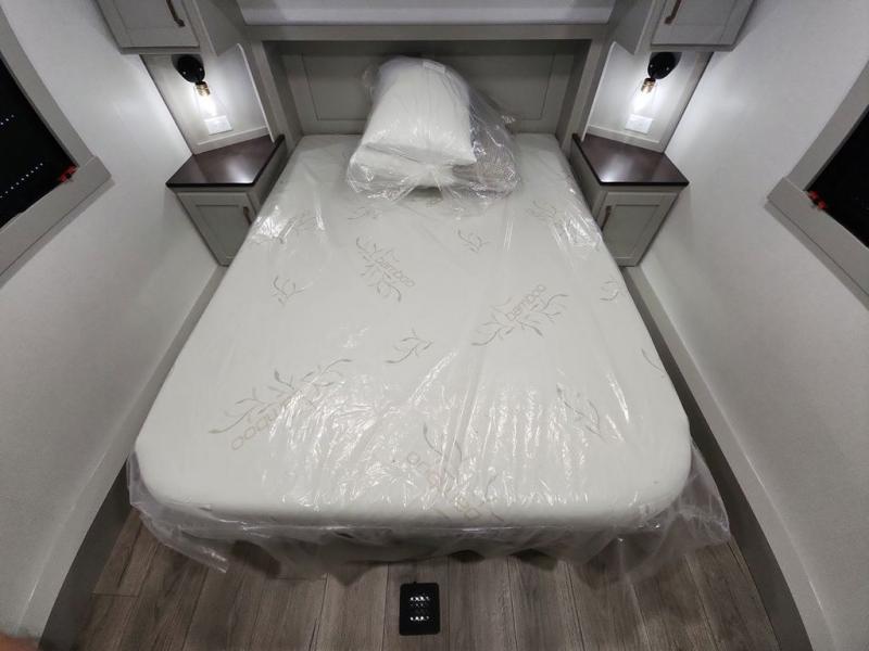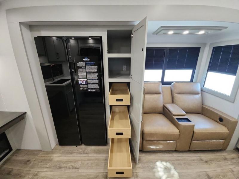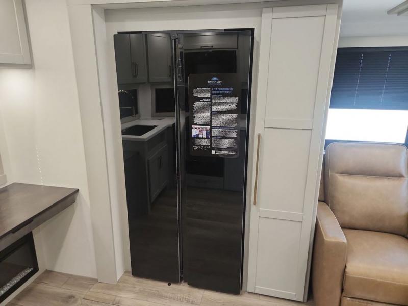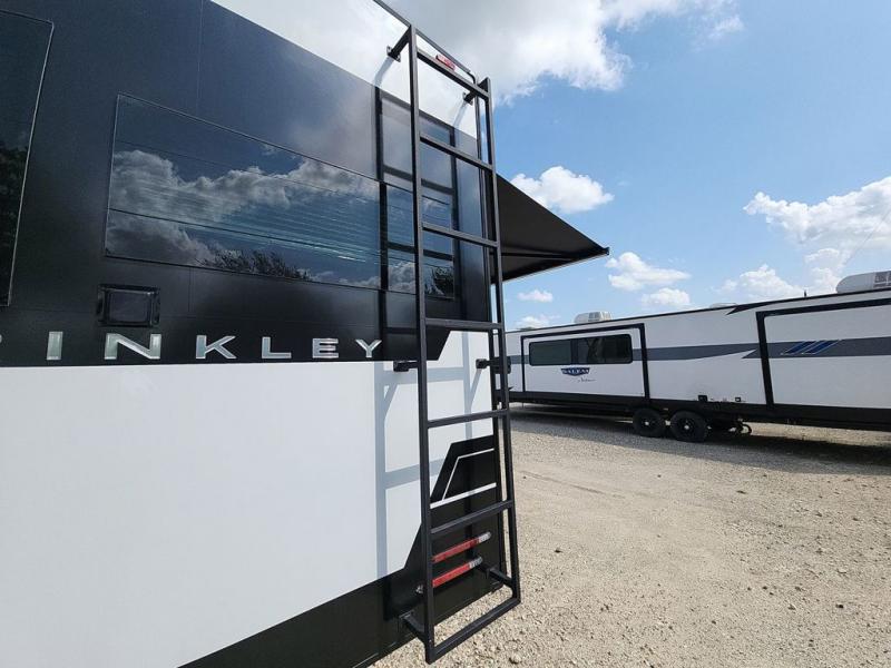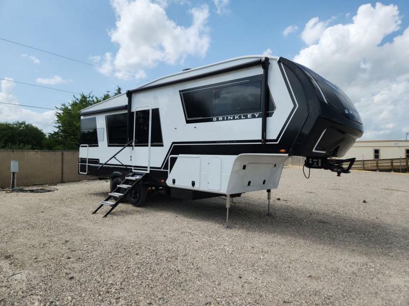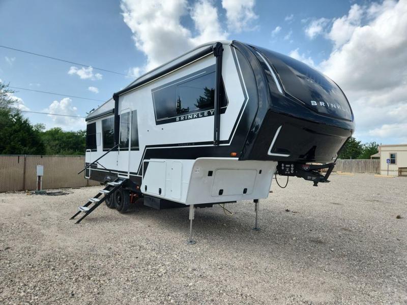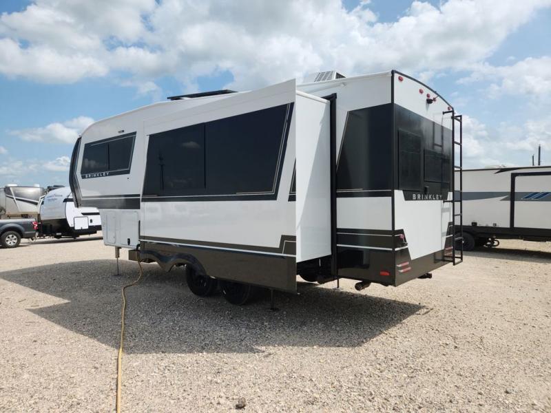The Brinkley mid-profile Model Z fifth wheels bring you clean lines and an upscale look with plenty of style and exciting new features like the industry first brass plumbing connections. These units also feature an automotive grade front cap, plenty of exterior storage, dual exterior hot and cold showers, and wide stance leveling jacks for easy set up. Residential frameless windows provide a clean look and beautiful views, and ample electrical outlets and USB/USB-C outlets allow all of your electronics and appliances to easily be used and charged.