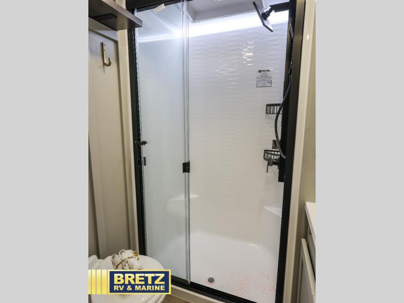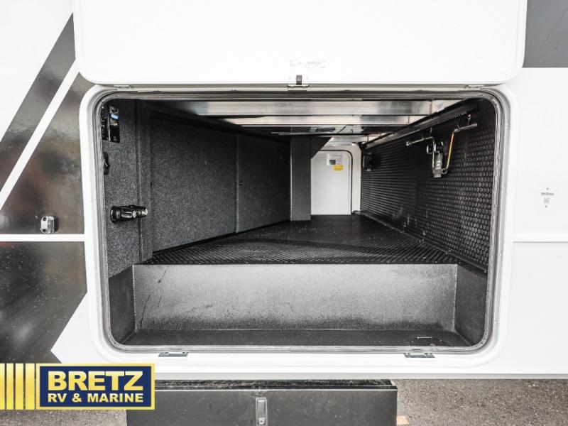 The Brinkley mid-profile Model Z fifth wheels bring you clean lines and an upscale look with plenty of style and exciting new features like the industry first brass plumbing connections. These units also feature an automotive grade front cap, plenty of exterior storage, dual exterior hot and cold showers, and wide stance leveling jacks for easy set up. Residential frameless windows provide a clean look and beautiful views, and ample electrical outlets and USB/USB-C outlets allow all of your electronics and appliances to easily be used and charged.