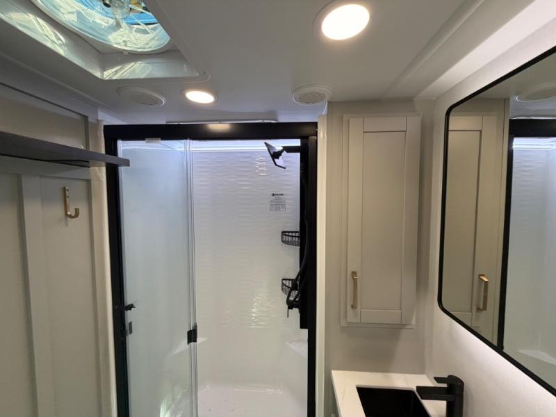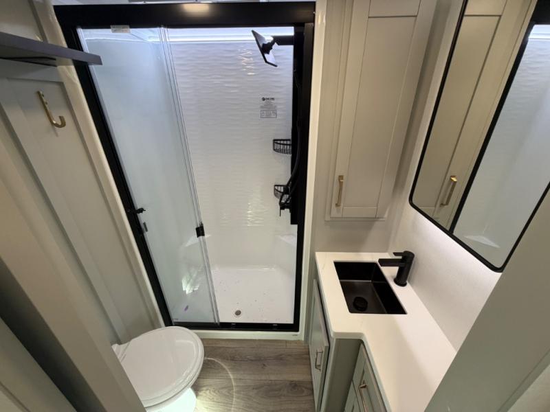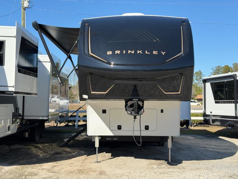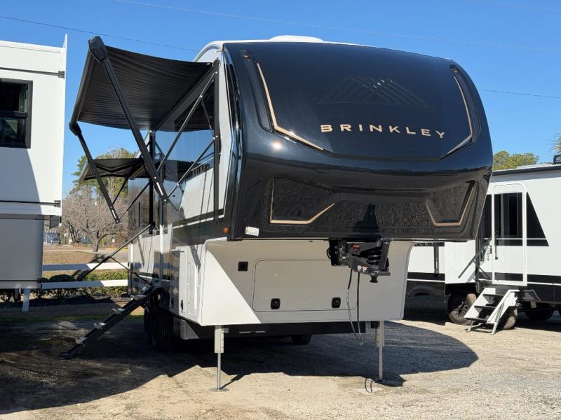 The Brinkley mid-profile Model Z fifth wheels bring you clean lines and an upscale look with plenty of style and exciting new features like the industry first brass plumbing connections. These units also feature an automotive grade front cap, plenty of exterior storage, dual exterior hot and cold showers, and wide stance leveling jacks for easy set up. Residential frameless windows provide a clean look and beautiful views, and ample electrical outlets and USB/USB-C outlets allow all of your electronics and appliances to easily be used and charged.
