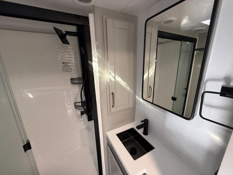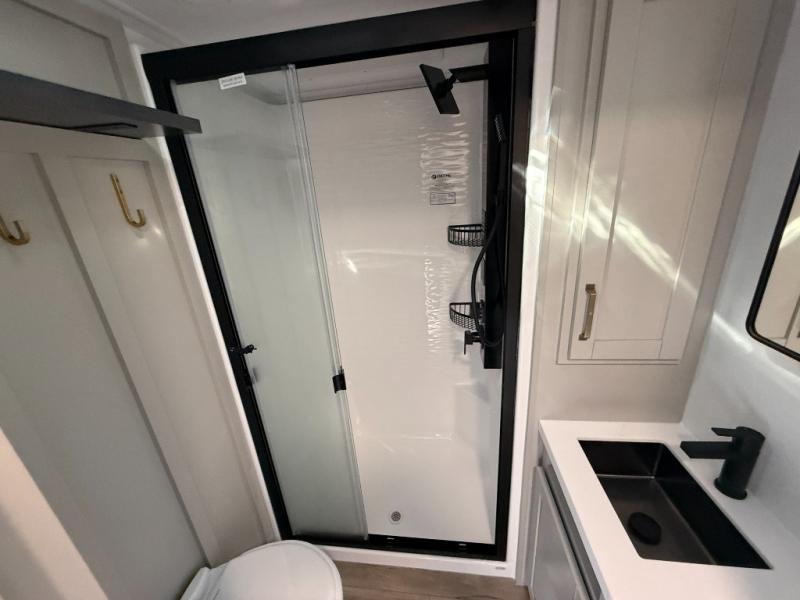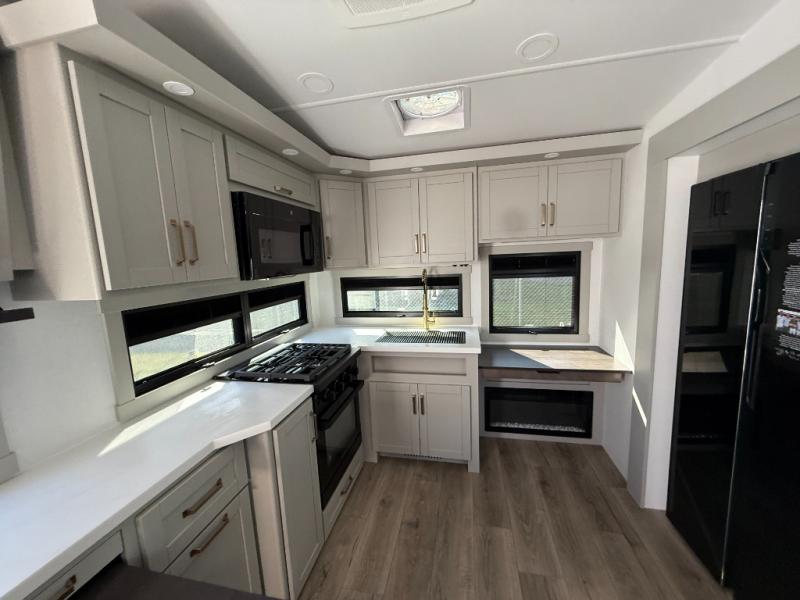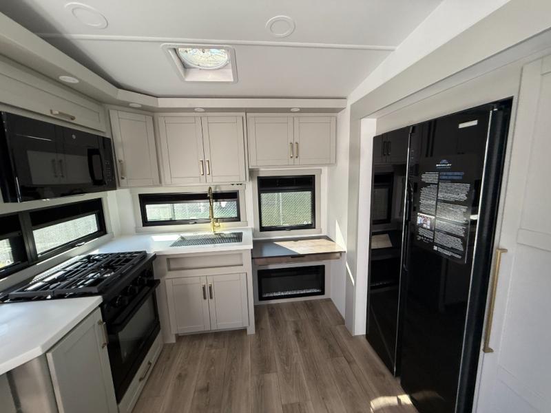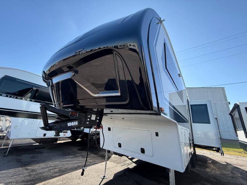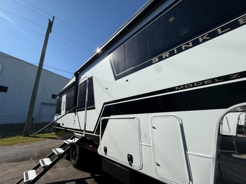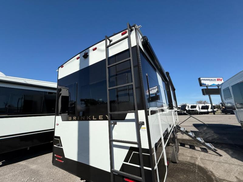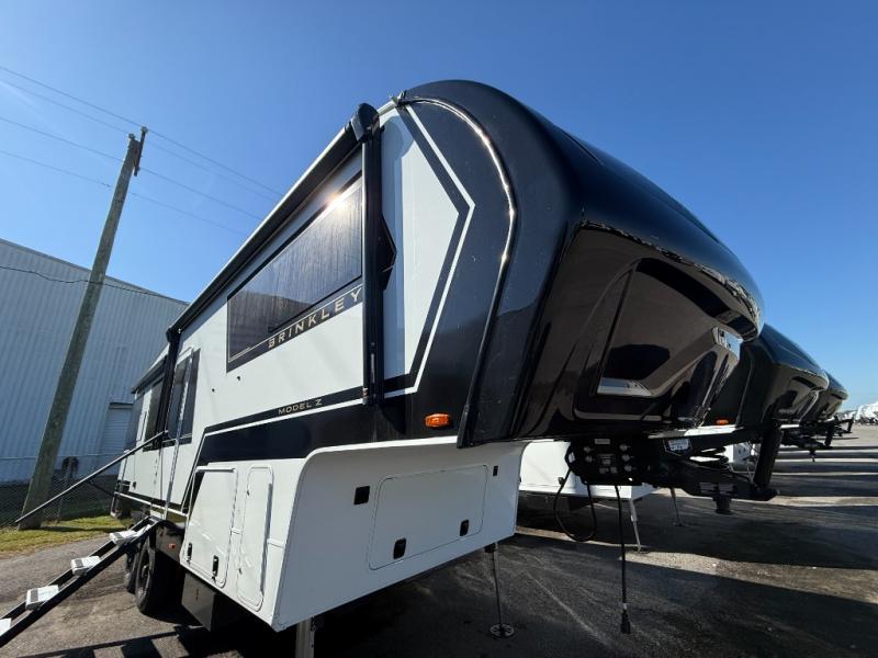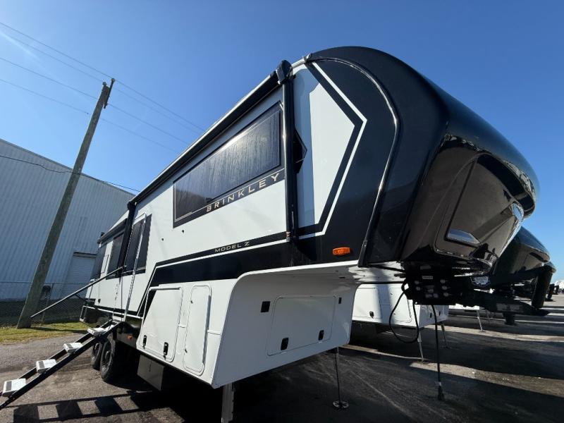 The Brinkley mid-profile Model Z fifth wheels bring you clean lines and an upscale look with plenty of style and exciting new features like the industry first brass plumbing connections. These units also feature an automotive grade front cap, plenty of exterior storage, dual exterior hot and cold showers, and wide stance leveling jacks for easy set up. Residential frameless windows provide a clean look and beautiful views, and ample electrical outlets and USB/USB-C outlets allow all of your electronics and appliances to easily be used and charged.