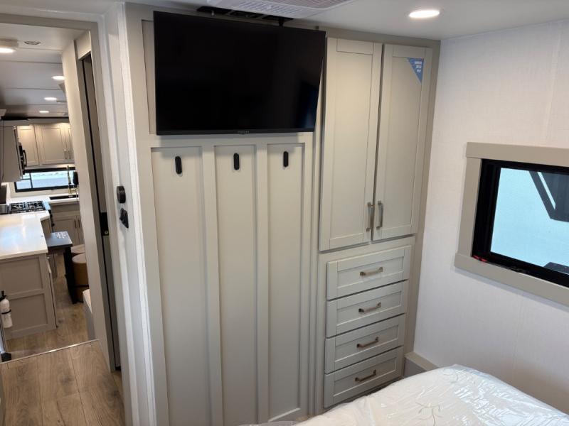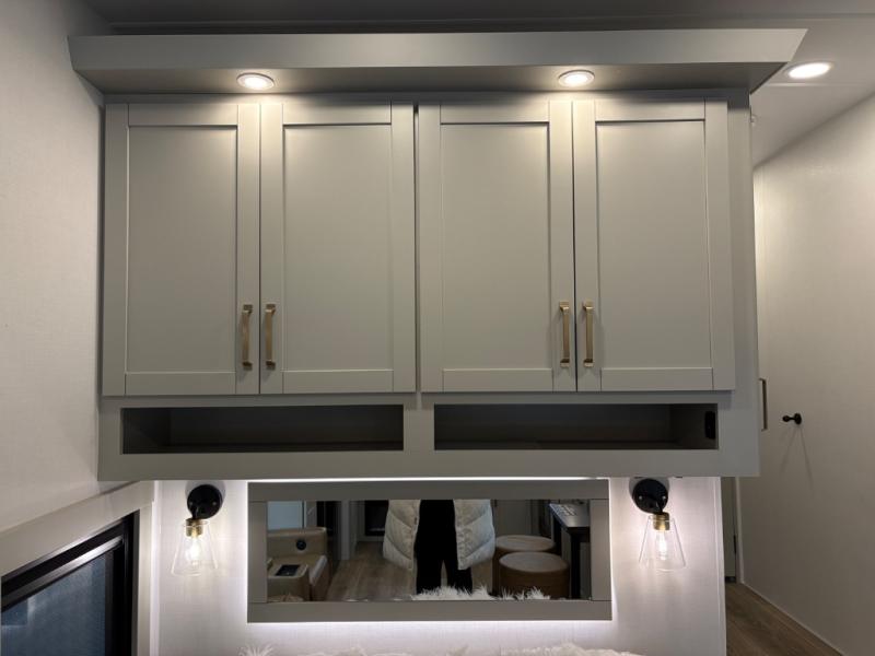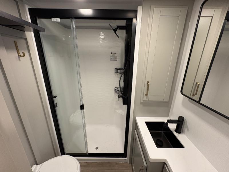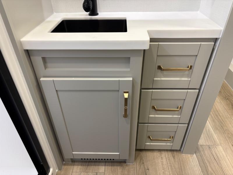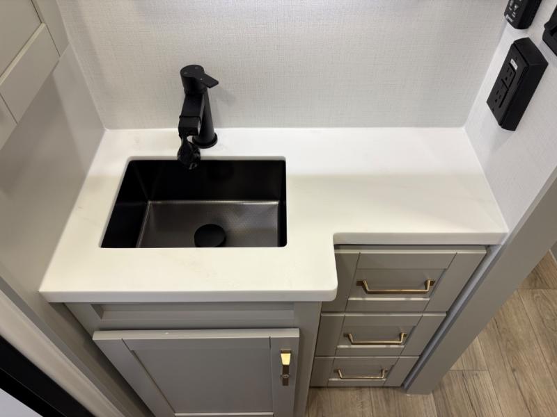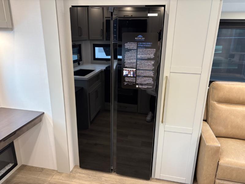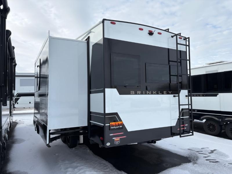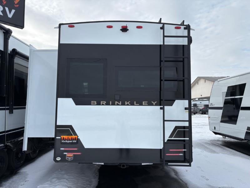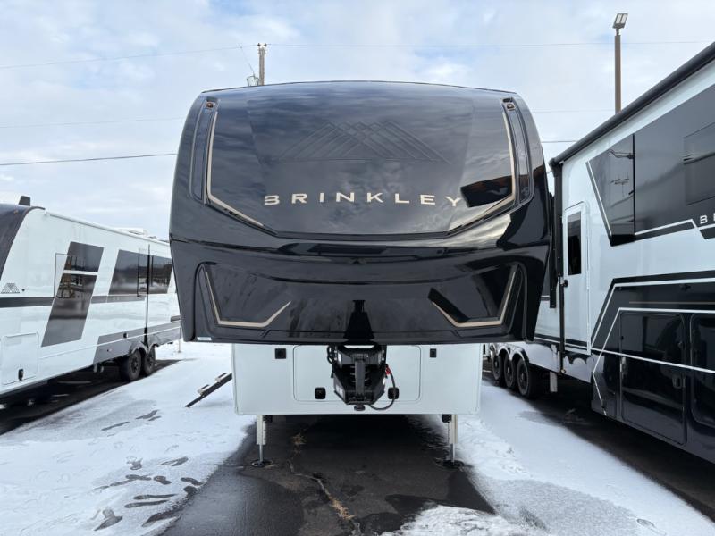 The Brinkley mid-profile Model Z fifth wheels bring you clean lines and an upscale look with plenty of style and exciting new features like the industry first brass plumbing connections. These units also feature an automotive grade front cap, plenty of exterior storage, dual exterior hot and cold showers, and wide stance leveling jacks for easy set up. Residential frameless windows provide a clean look and beautiful views, and ample electrical outlets and USB/USB-C outlets allow all of your electronics and appliances to easily be used and charged.