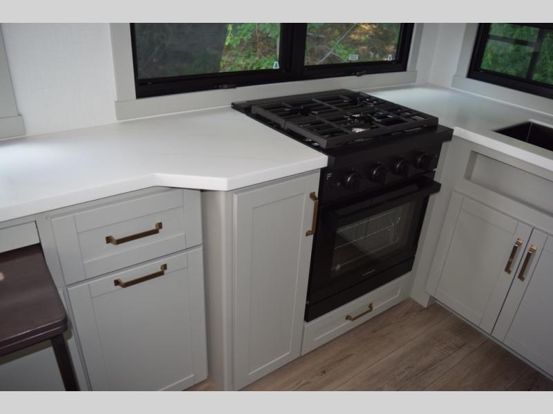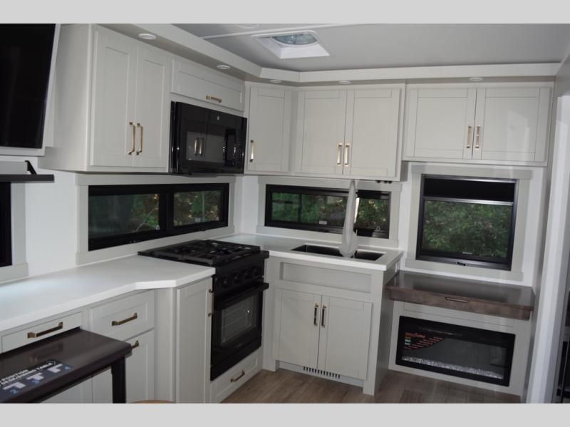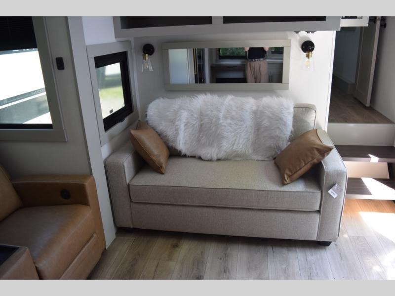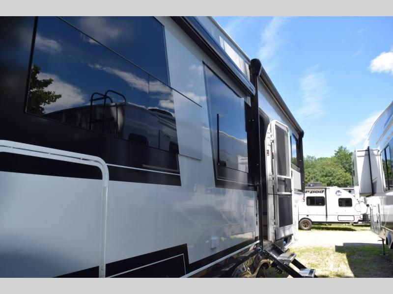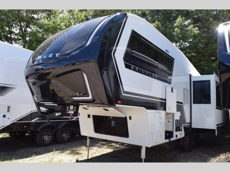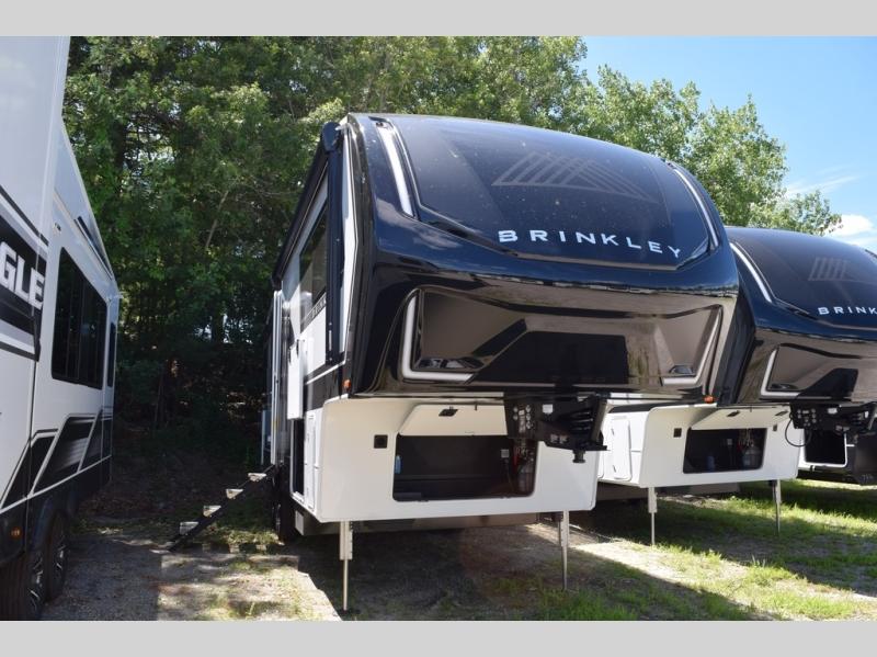 The Brinkley mid-profile Model Z fifth wheels bring you clean lines and an upscale look with plenty of style and exciting new features like the industry first brass plumbing connections. These units also feature an automotive grade front cap, plenty of exterior storage, dual exterior hot and cold showers, and wide stance leveling jacks for easy set up. Residential frameless windows provide a clean look and beautiful views, and ample electrical outlets and USB/USB-C outlets allow all of your electronics and appliances to easily be used and charged.