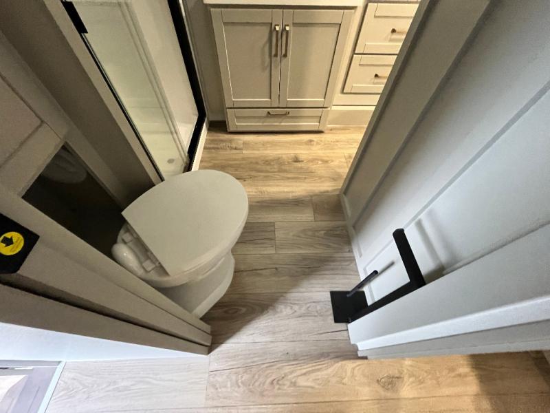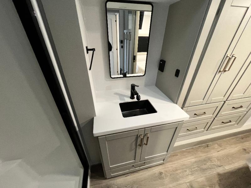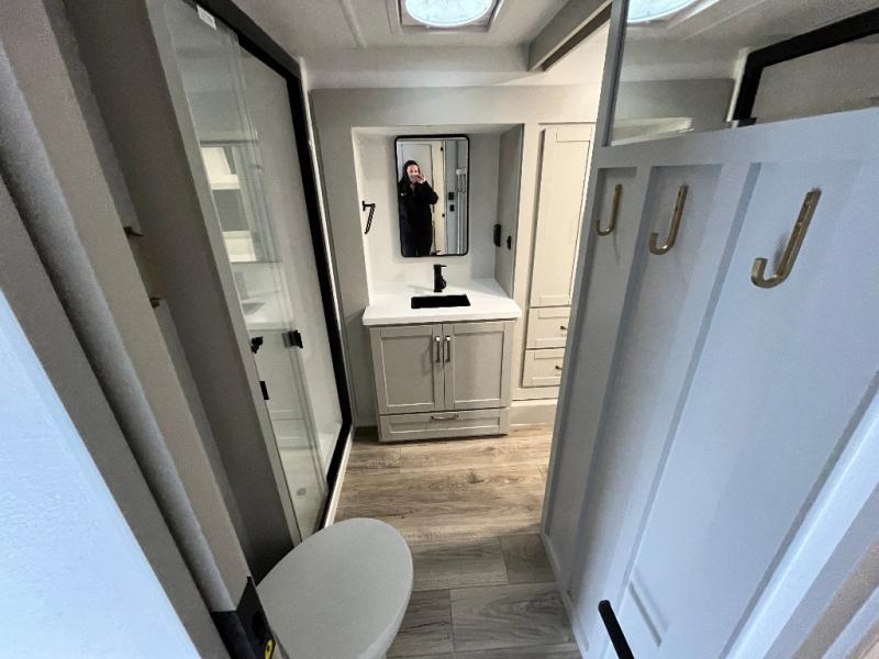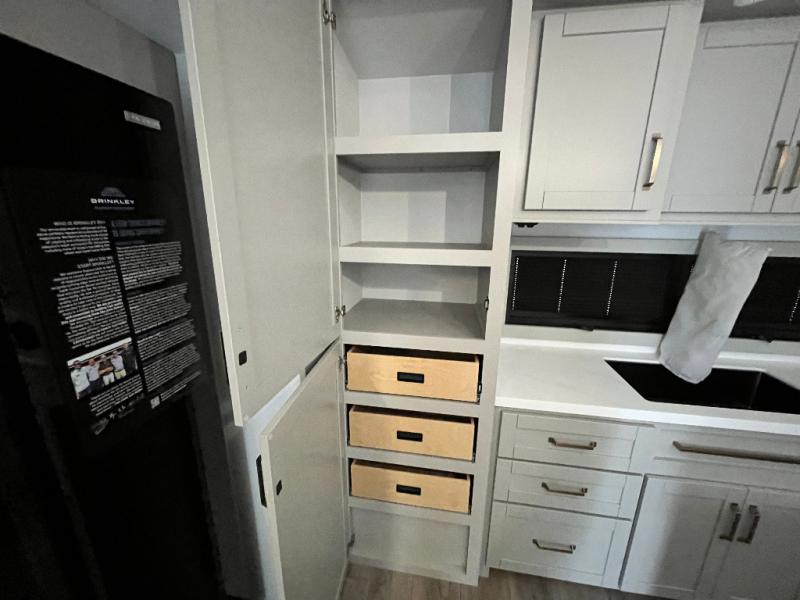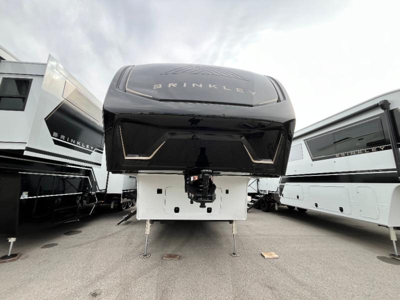 The Brinkley mid-profile Model Z fifth wheels bring you clean lines and an upscale look with plenty of style and exciting new features like the industry first brass plumbing connections. These units also feature an automotive grade front cap, plenty of exterior storage, exterior hot and cold showers, and wide stance leveling jacks for easy set up. Residential frameless windows provide a clean look and beautiful views, and ample electrical outlets and 6 USB/USB-C outlets allow all of your electronics and appliances to easily be used and charged.