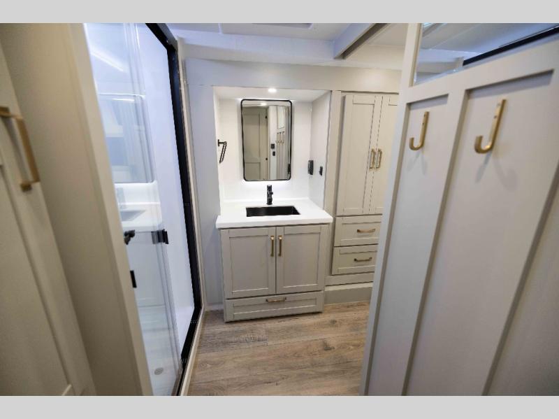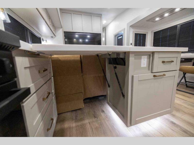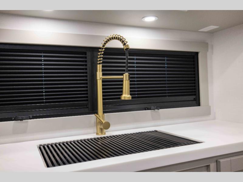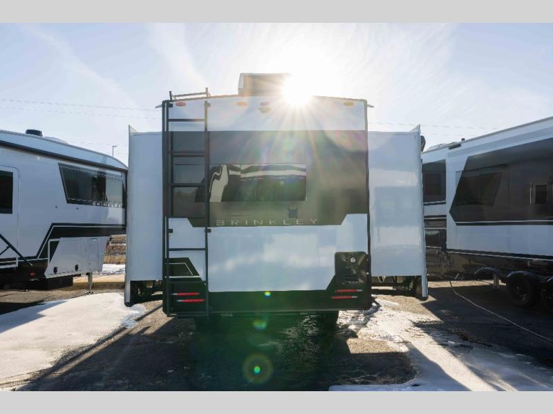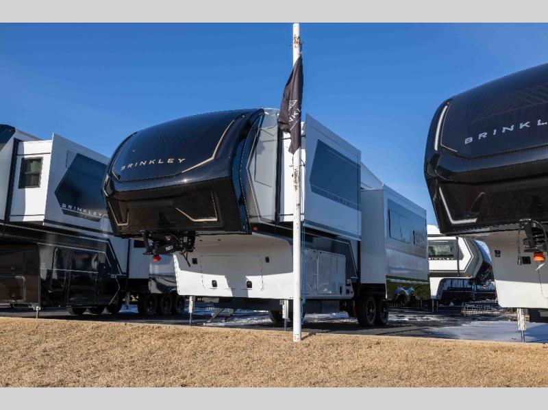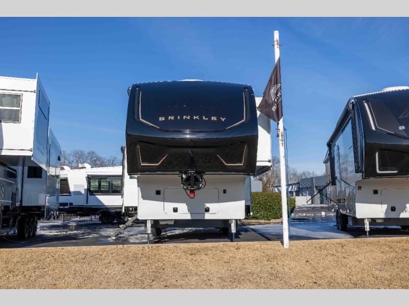 The Brinkley mid-profile Model Z fifth wheels bring you clean lines and an upscale look with plenty of style and exciting new features like the industry first brass plumbing connections. These units also feature an automotive grade front cap, plenty of exterior storage, exterior hot and cold showers, and wide stance leveling jacks for easy set up. Residential frameless windows provide a clean look and beautiful views, and ample electrical outlets and 6 USB/USB-C outlets allow all of your electronics and appliances to easily be used and charged.