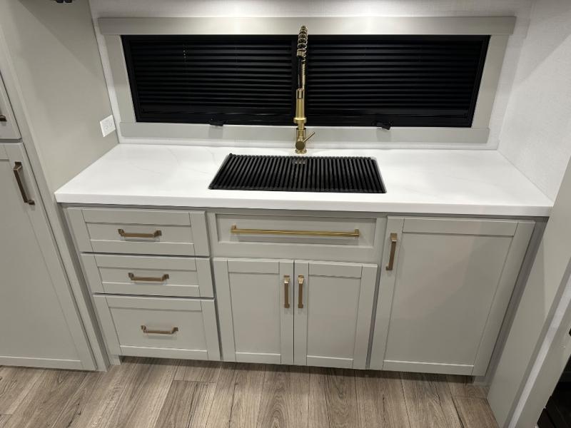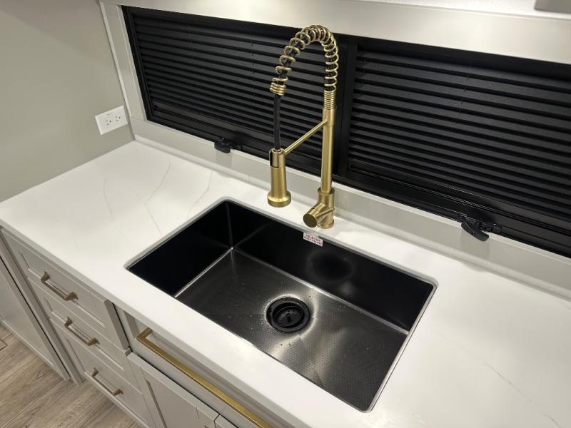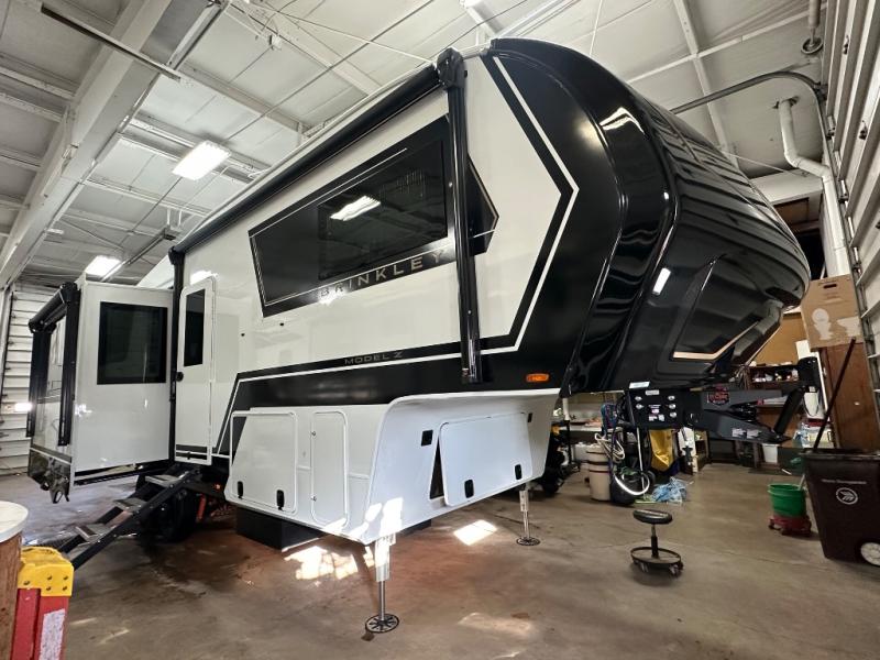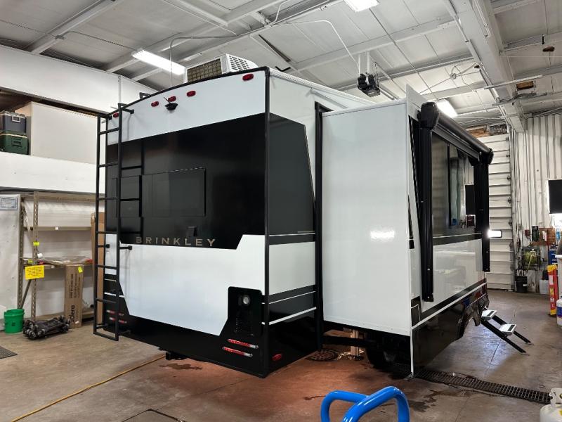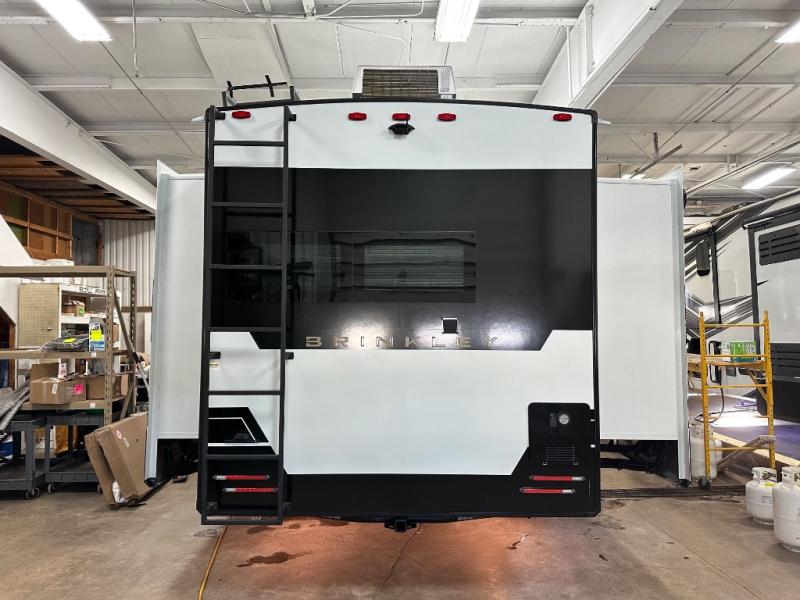 The Brinkley mid-profile Model Z fifth wheels bring you clean lines and an upscale look with plenty of style and exciting new features like the industry first brass plumbing connections. These units also feature an automotive grade front cap, plenty of exterior storage, exterior hot and cold showers, and wide stance leveling jacks for easy set up. Residential frameless windows provide a clean look and beautiful views, and ample electrical outlets and 6 USB/USB-C outlets allow all of your electronics and appliances to easily be used and charged.