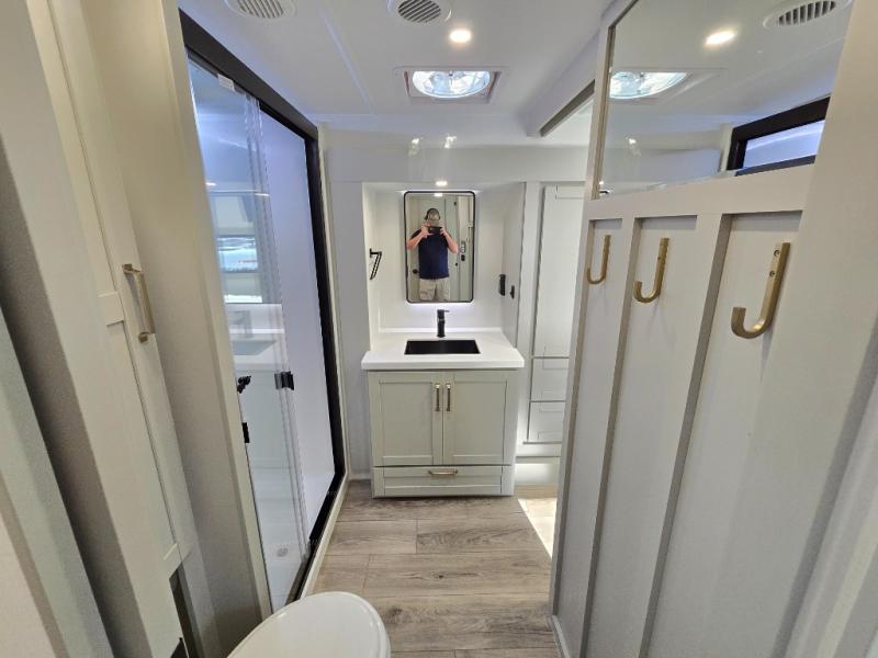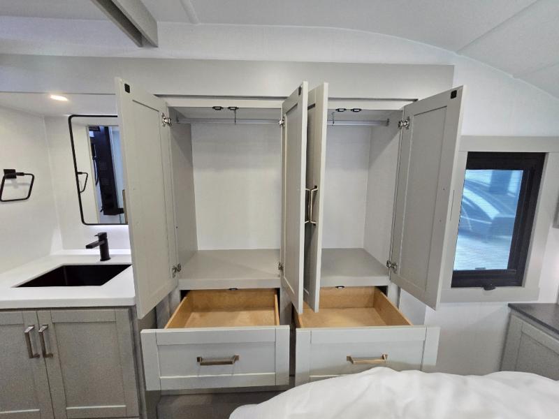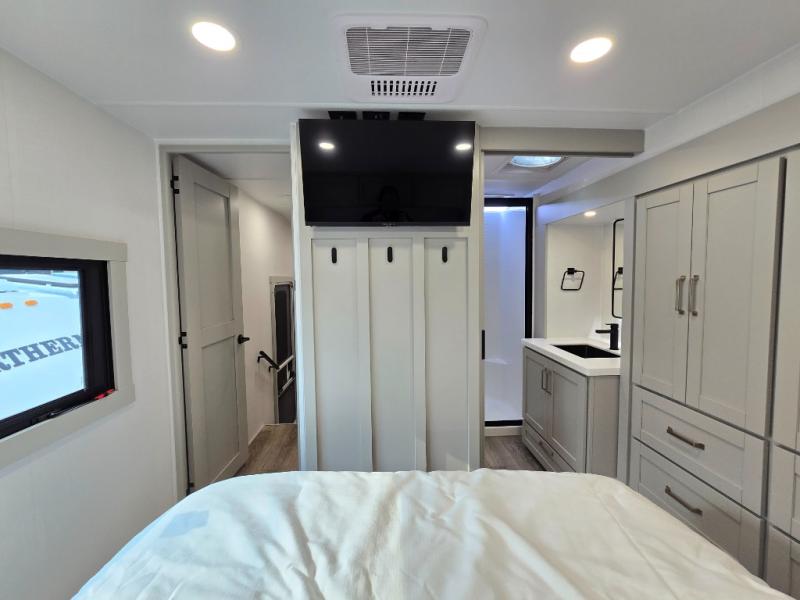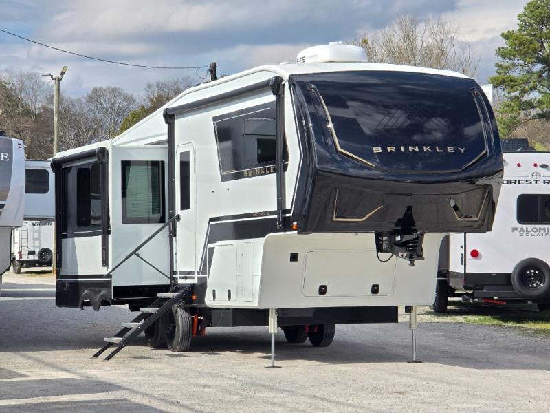 The Brinkley mid-profile Model Z fifth wheels bring you clean lines and an upscale look with plenty of style and exciting new features like the industry first brass plumbing connections. These units also feature an automotive grade front cap, plenty of exterior storage, exterior hot and cold showers, and wide stance leveling jacks for easy set up. Residential frameless windows provide a clean look and beautiful views, and ample electrical outlets and 6 USB/USB-C outlets allow all of your electronics and appliances to easily be used and charged.