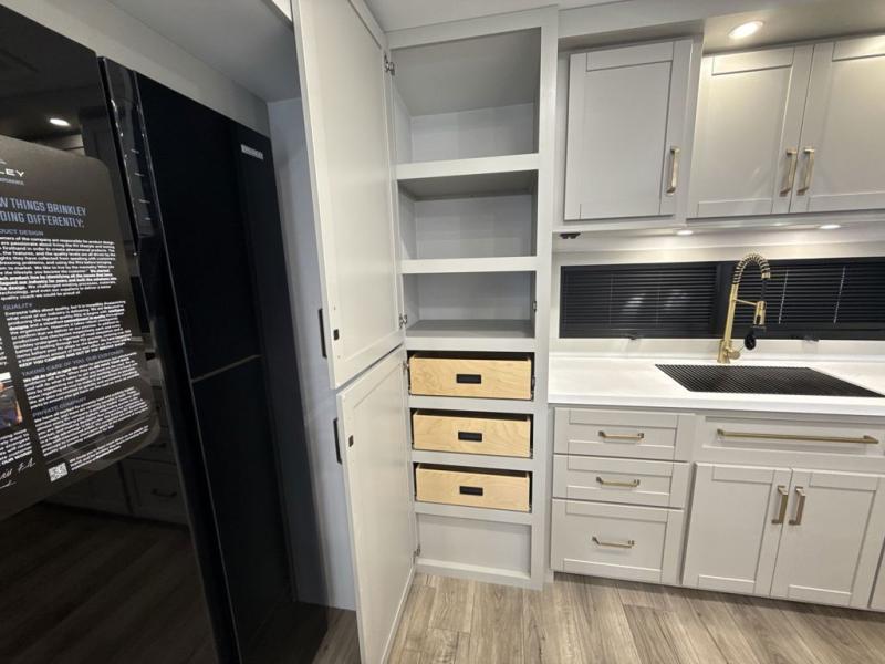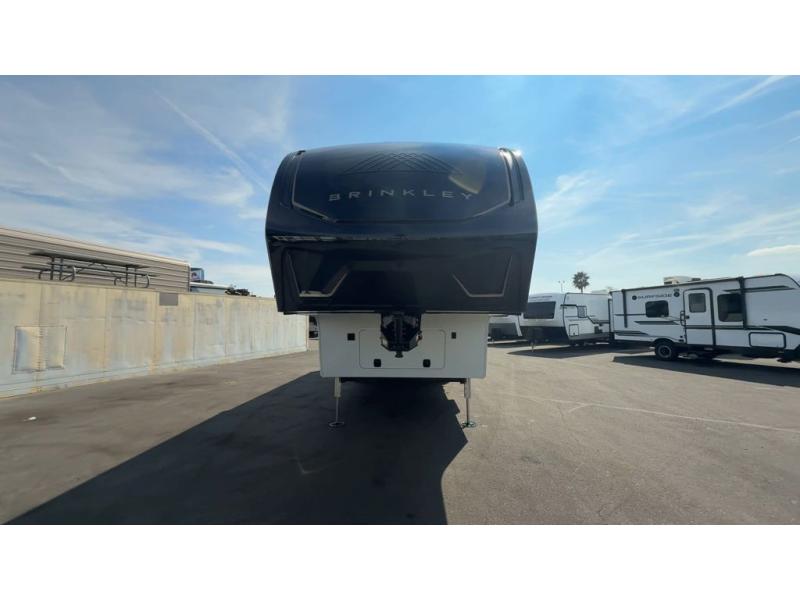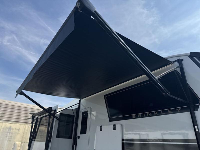 The Brinkley mid-profile Model Z fifth wheels bring you clean lines and an upscale look with plenty of style and exciting new features like the industry first brass plumbing connections. These units also feature an automotive grade front cap, plenty of exterior storage, exterior hot and cold showers, and wide stance leveling jacks for easy set up. Residential frameless windows provide a clean look and beautiful views, and ample electrical outlets and 6 USB/USB-C outlets allow all of your electronics and appliances to easily be used and charged.