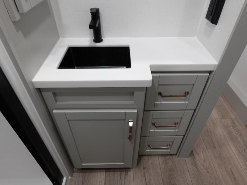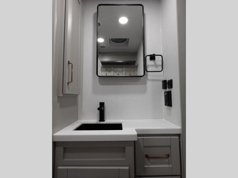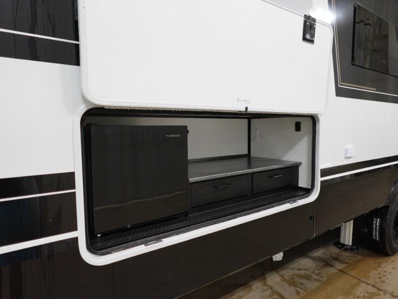 The Brinkley mid-profile Model Z fifth wheels bring you clean lines and an upscale look with plenty of style and exciting new features like the industry first brass plumbing connections. These units also feature an automotive grade front cap, plenty of exterior storage, exterior hot and cold showers, and wide stance leveling jacks for easy set up. Residential frameless windows provide a clean look and beautiful views, and ample electrical outlets and 6 USB/USB-C outlets allow all of your electronics and appliances to easily be used and charged.