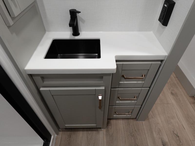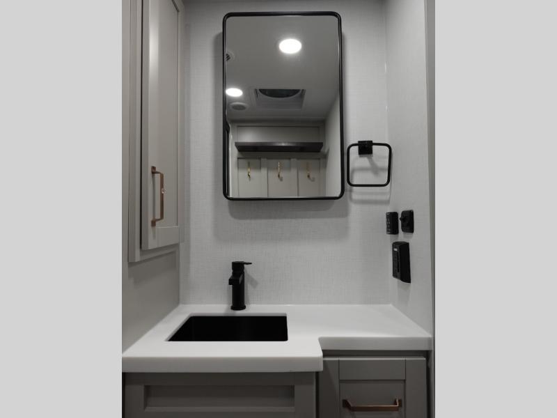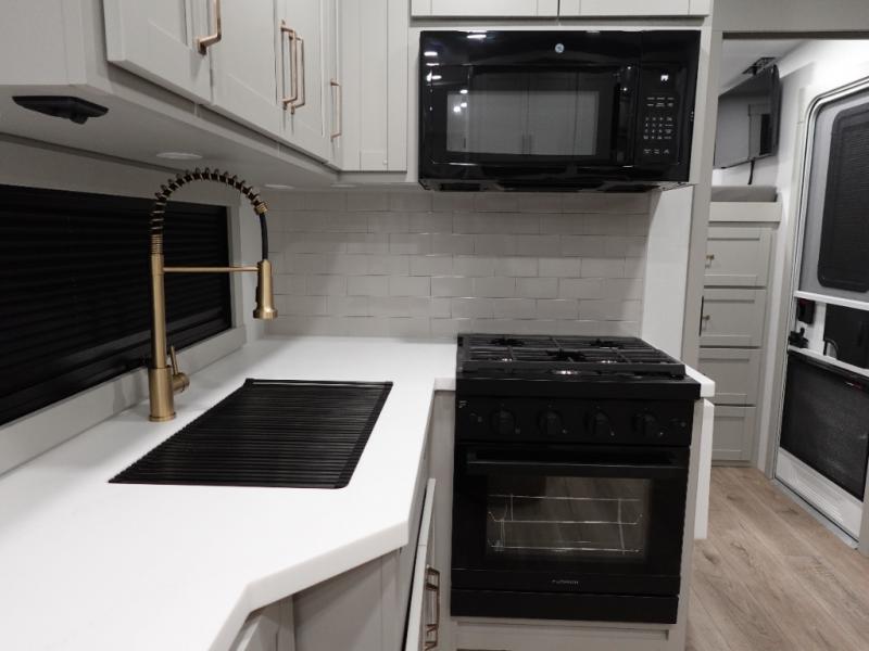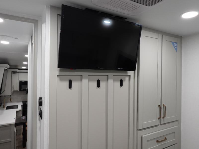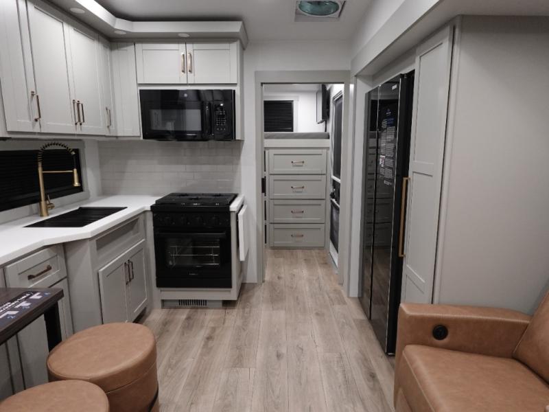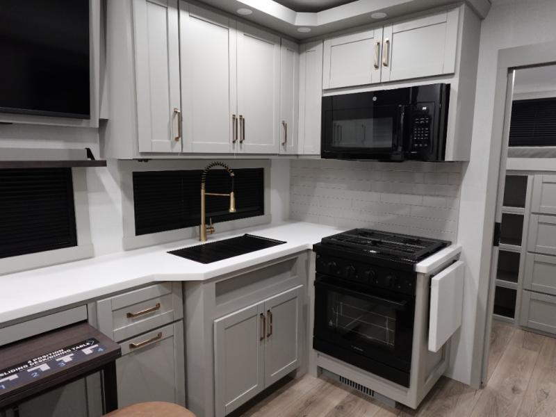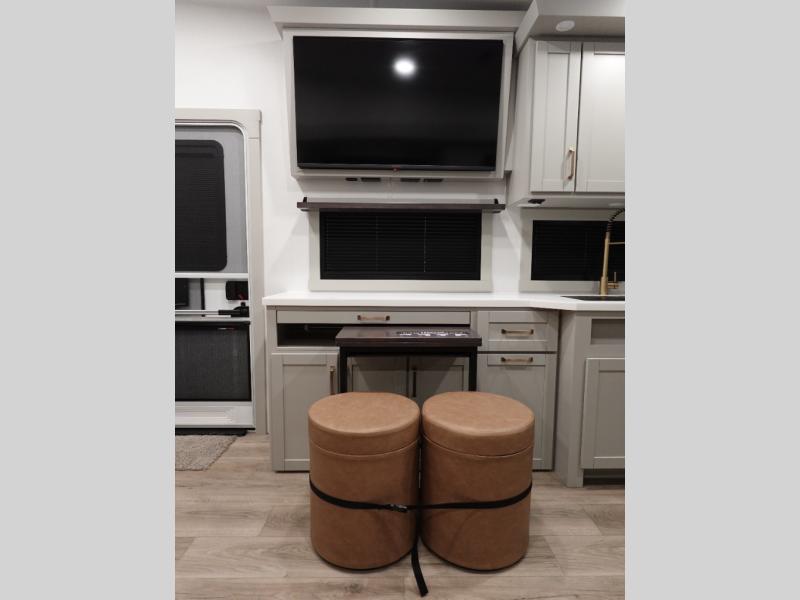 The Brinkley mid-profile Model Z fifth wheels bring you clean lines and an upscale look with plenty of style and exciting new features like the industry first brass plumbing connections. These units also feature an automotive grade front cap, plenty of exterior storage, exterior hot and cold showers, and wide stance leveling jacks for easy set up. Residential frameless windows provide a clean look and beautiful views, and ample electrical outlets and 6 USB/USB-C outlets allow all of your electronics and appliances to easily be used and charged.