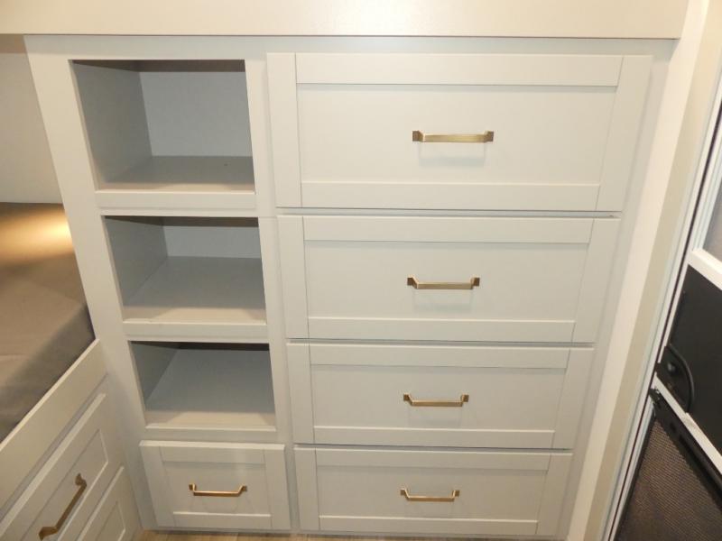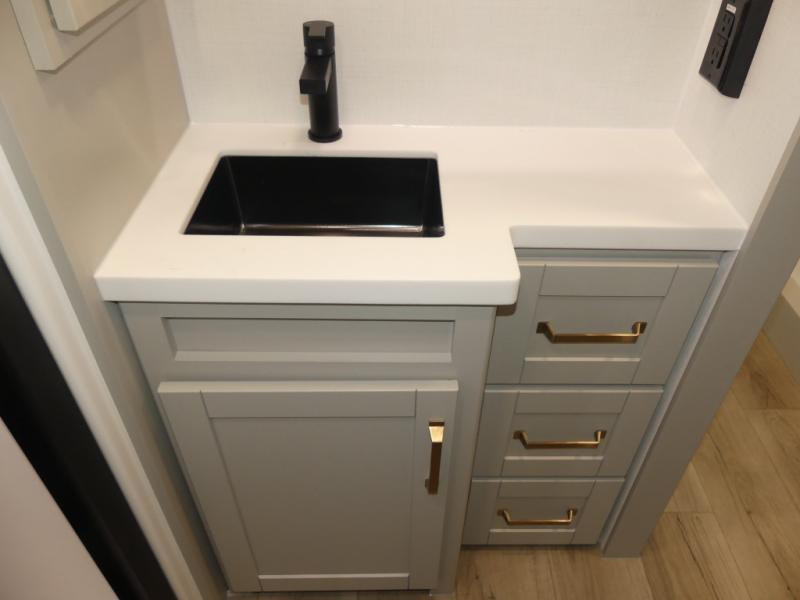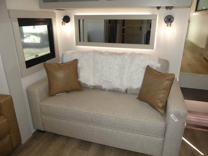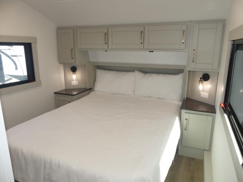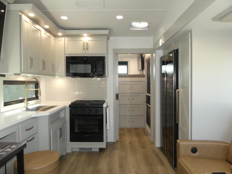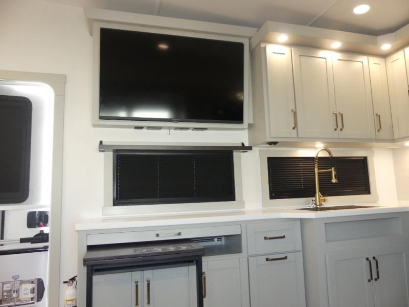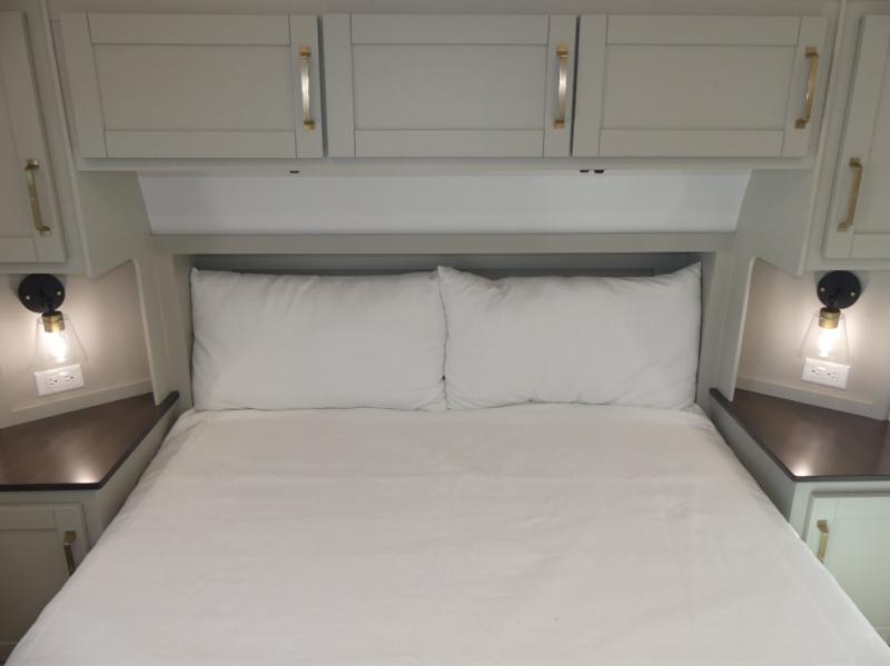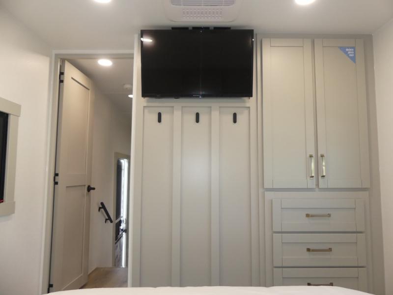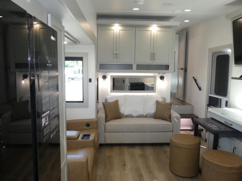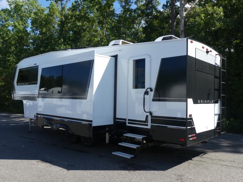 The Brinkley mid-profile Model Z fifth wheels bring you clean lines and an upscale look with plenty of style and exciting new features like the industry first brass plumbing connections. These units also feature an automotive grade front cap, plenty of exterior storage, exterior hot and cold showers, and wide stance leveling jacks for easy set up. Residential frameless windows provide a clean look and beautiful views, and ample electrical outlets and 6 USB/USB-C outlets allow all of your electronics and appliances to easily be used and charged.