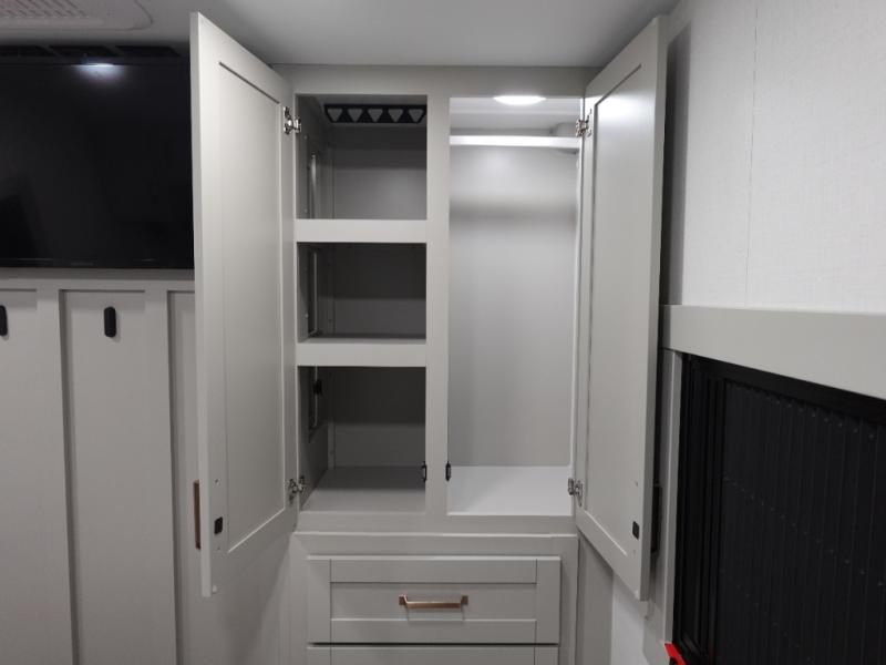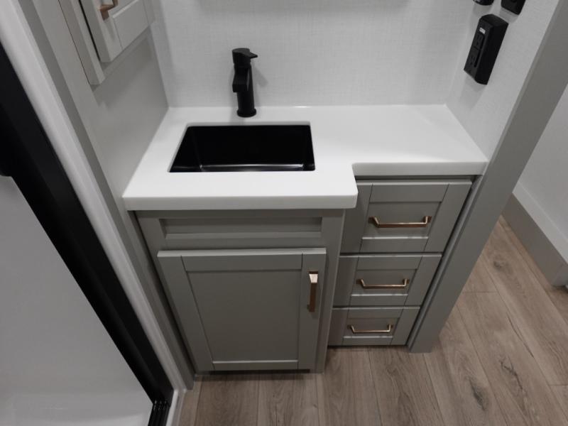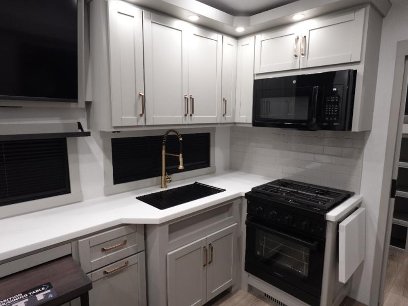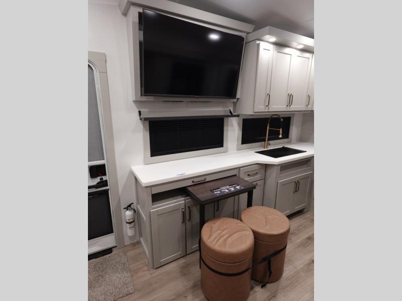 The Brinkley mid-profile Model Z fifth wheels bring you clean lines and an upscale look with plenty of style and exciting new features like the industry first brass plumbing connections. These units also feature an automotive grade front cap, plenty of exterior storage, exterior hot and cold showers, and wide stance leveling jacks for easy set up. Residential frameless windows provide a clean look and beautiful views, and ample electrical outlets and 6 USB/USB-C outlets allow all of your electronics and appliances to easily be used and charged.