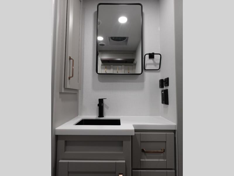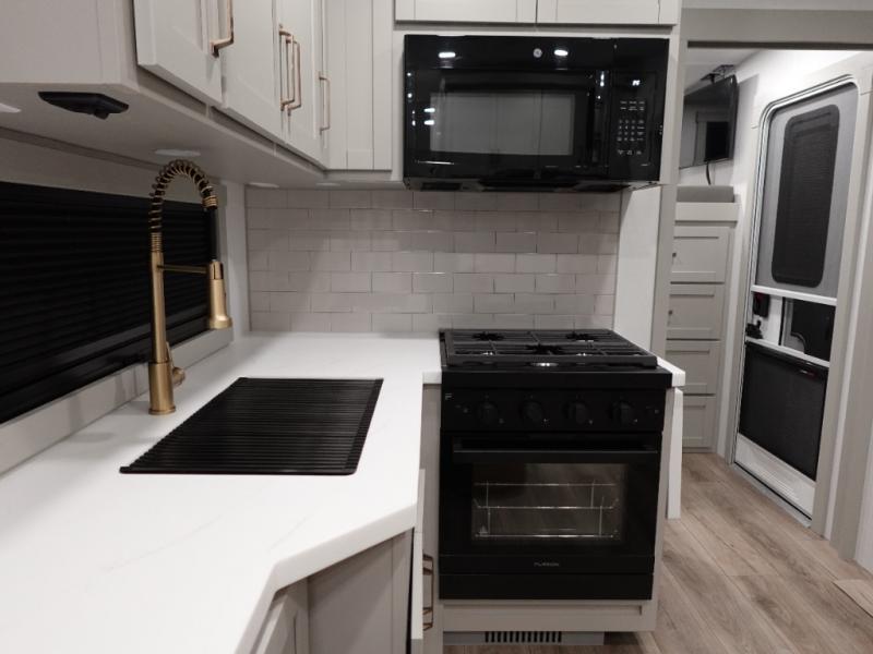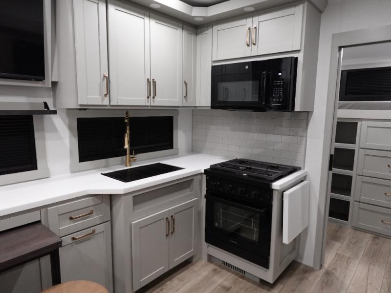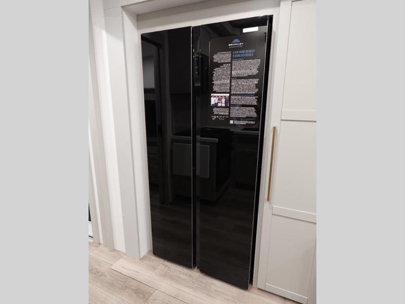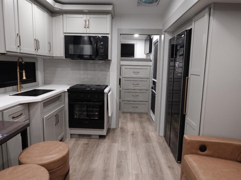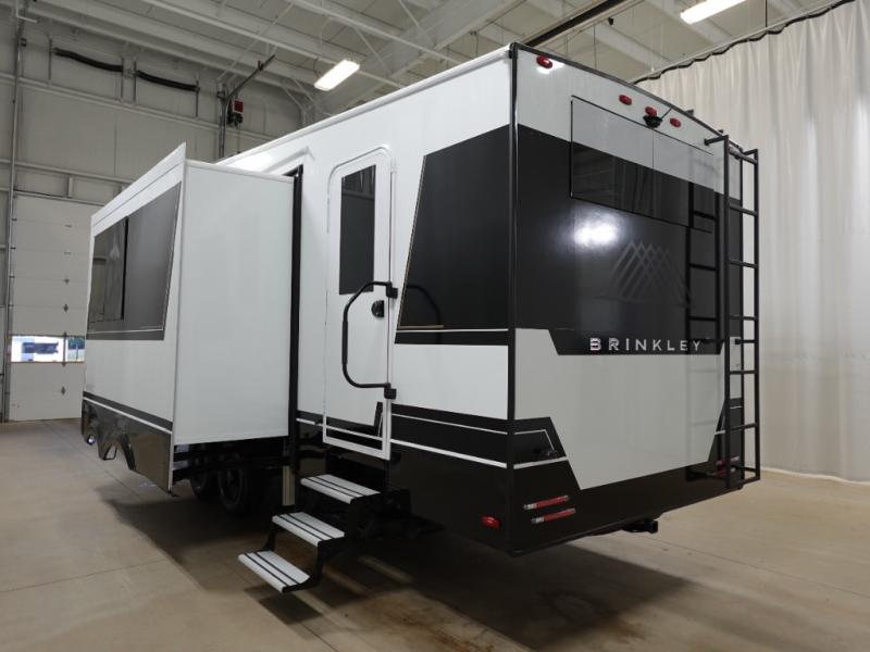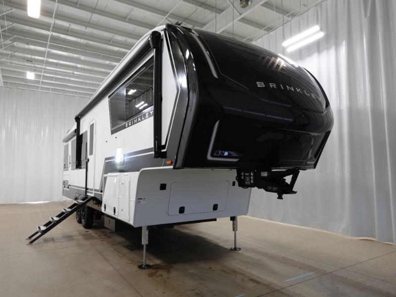 The Brinkley mid-profile Model Z fifth wheels bring you clean lines and an upscale look with plenty of style and exciting new features like the industry first brass plumbing connections. These units also feature an automotive grade front cap, plenty of exterior storage, exterior hot and cold showers, and wide stance leveling jacks for easy set up. Residential frameless windows provide a clean look and beautiful views, and ample electrical outlets and 6 USB/USB-C outlets allow all of your electronics and appliances to easily be used and charged.