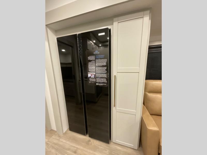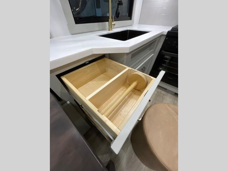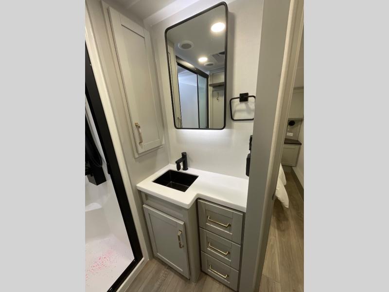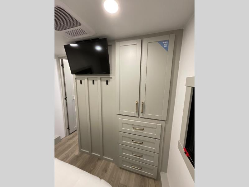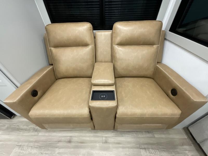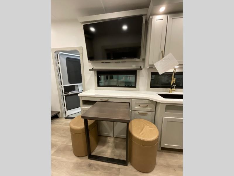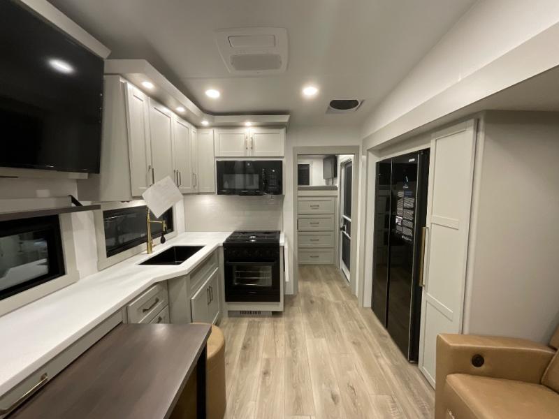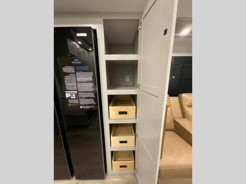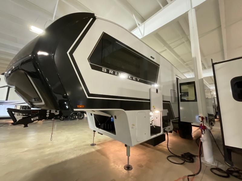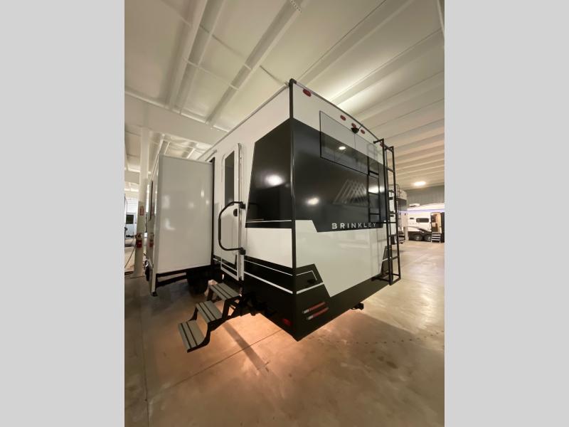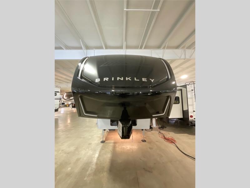 The Brinkley mid-profile Model Z fifth wheels bring you clean lines and an upscale look with plenty of style and exciting new features like the industry first brass plumbing connections. These units also feature an automotive grade front cap, plenty of exterior storage, exterior hot and cold showers, and wide stance leveling jacks for easy set up. Residential frameless windows provide a clean look and beautiful views, and ample electrical outlets and 6 USB/USB-C outlets allow all of your electronics and appliances to easily be used and charged.
