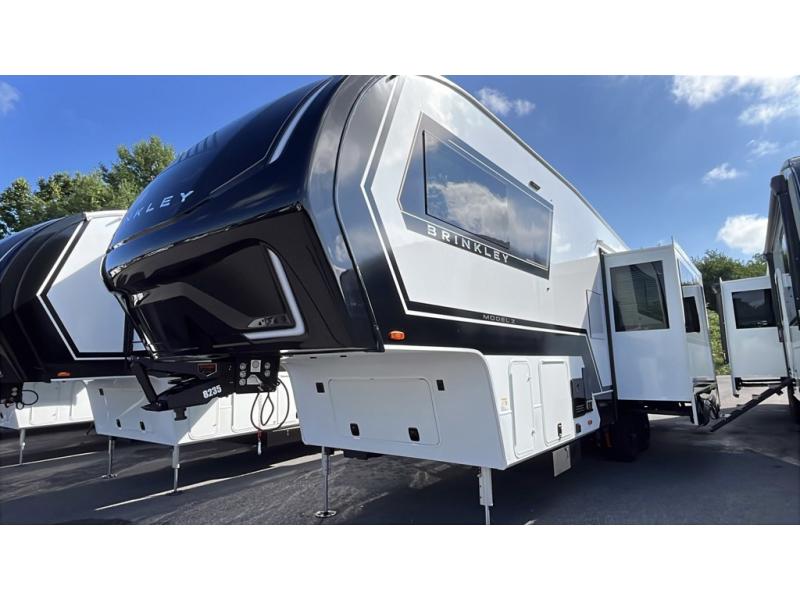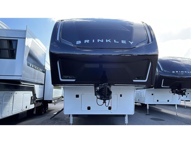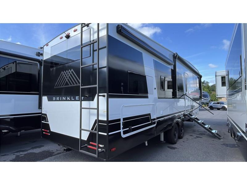 The Brinkley mid-profile Model Z fifth wheels bring you clean lines and an upscale look with plenty of style and exciting new features like the industry first brass plumbing connections. These units also feature an automotive grade front cap, plenty of exterior storage, exterior hot and cold showers, and wide stance leveling jacks for easy set up. Residential frameless windows provide a clean look and beautiful views, and ample electrical outlets and 6 USB/USB-C outlets allow all of your electronics and appliances to easily be used and charged.