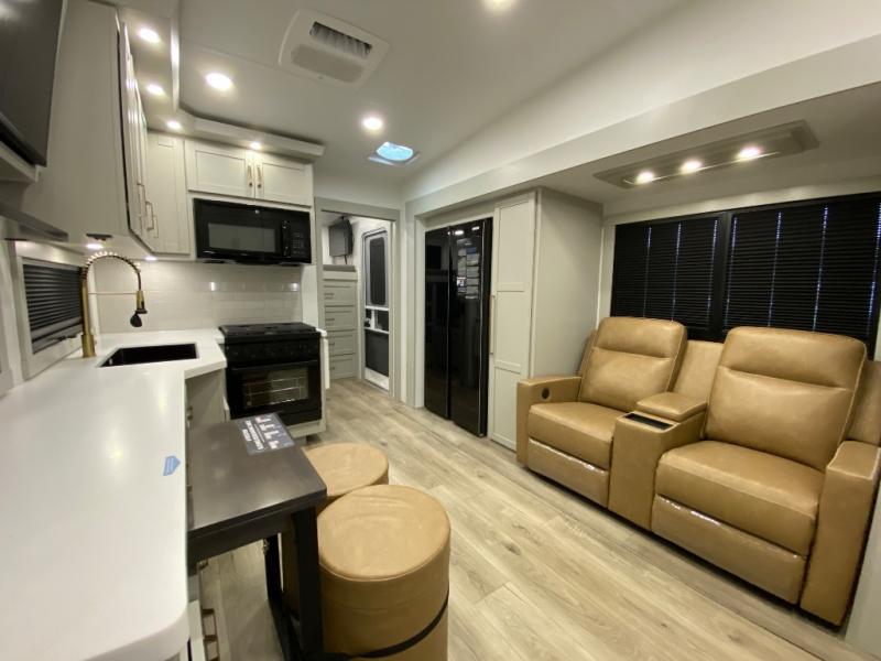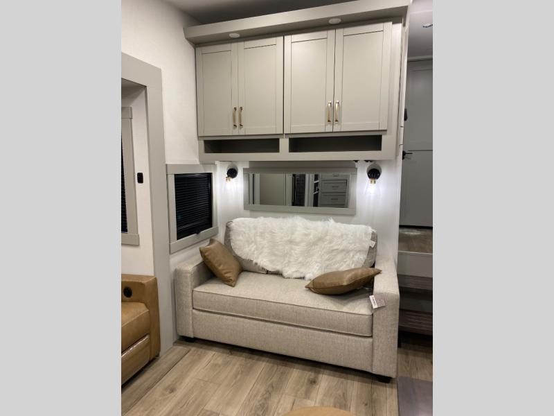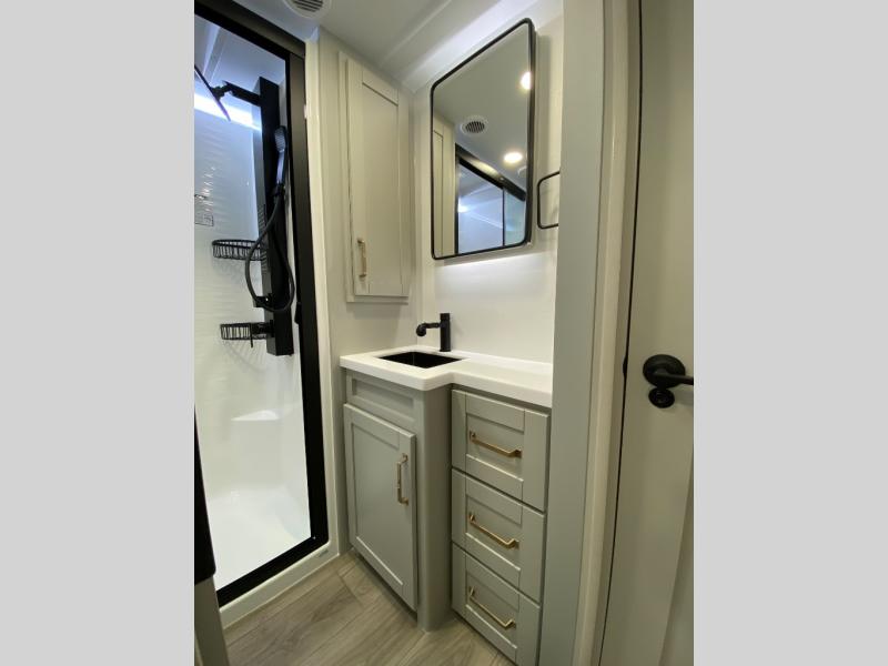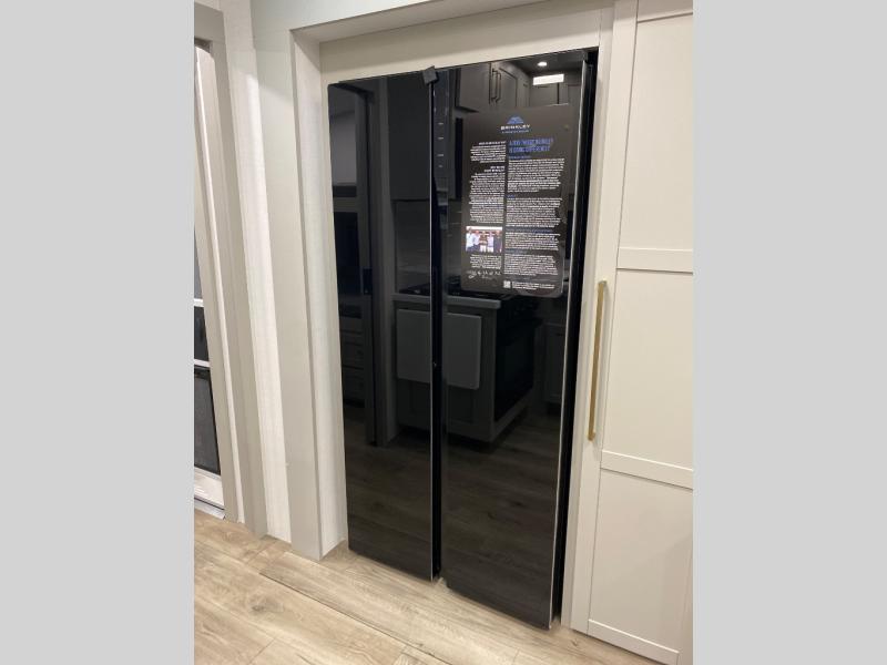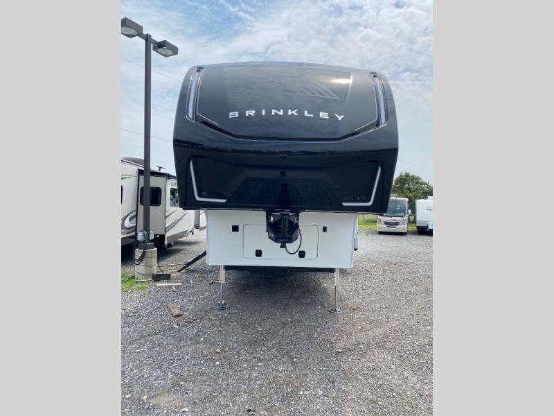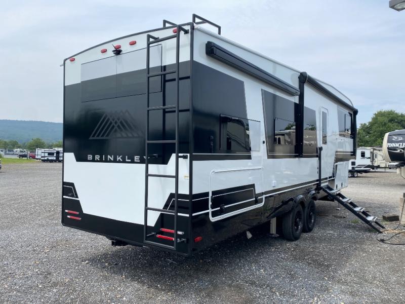 The Brinkley mid-profile Model Z fifth wheels bring you clean lines and an upscale look with plenty of style and exciting new features like the industry first brass plumbing connections. These units also feature an automotive grade front cap, plenty of exterior storage, exterior hot and cold showers, and wide stance leveling jacks for easy set up. Residential frameless windows provide a clean look and beautiful views, and ample electrical outlets and 6 USB/USB-C outlets allow all of your electronics and appliances to easily be used and charged.