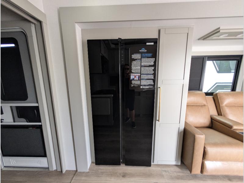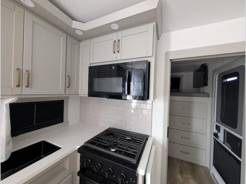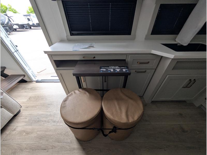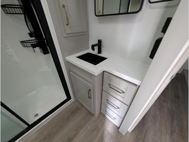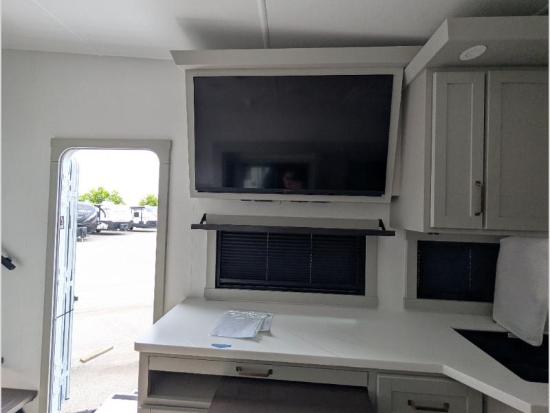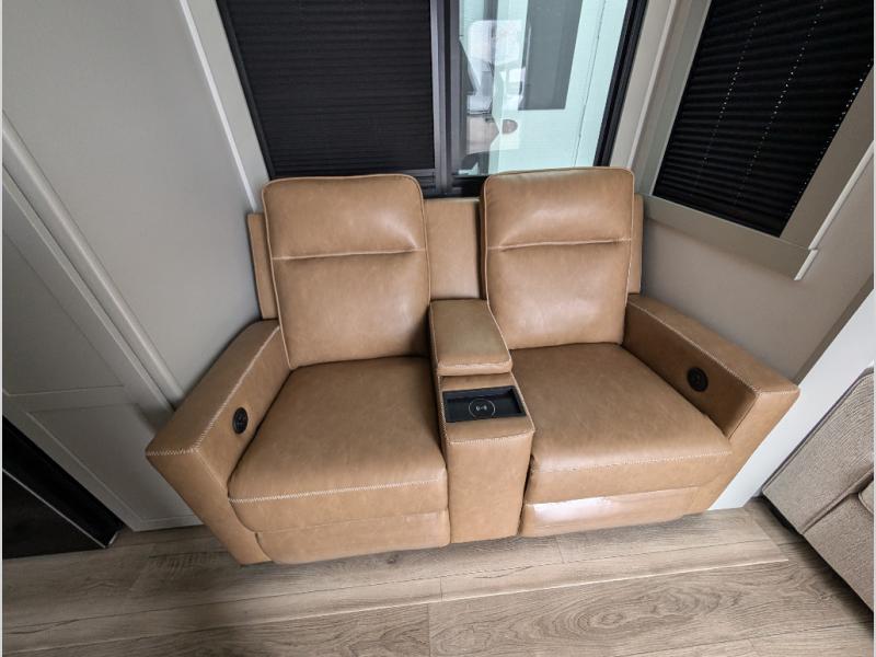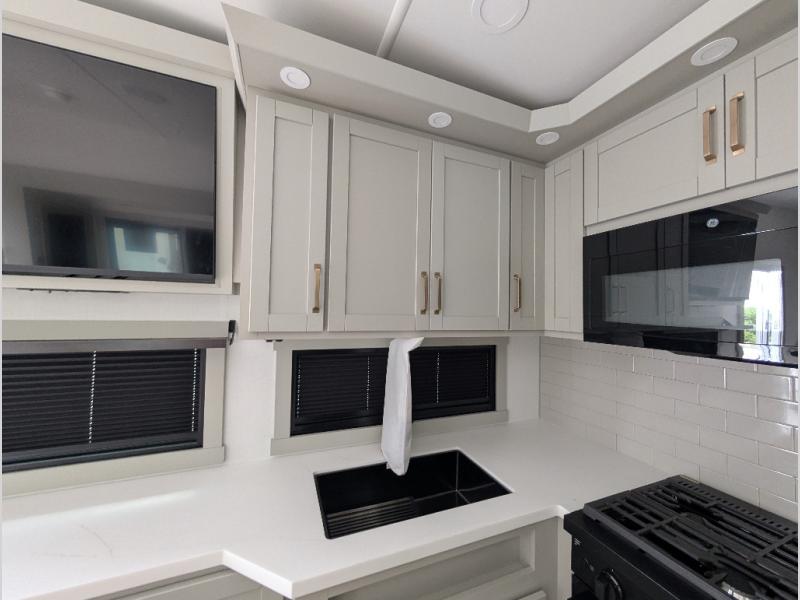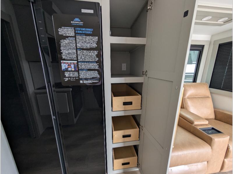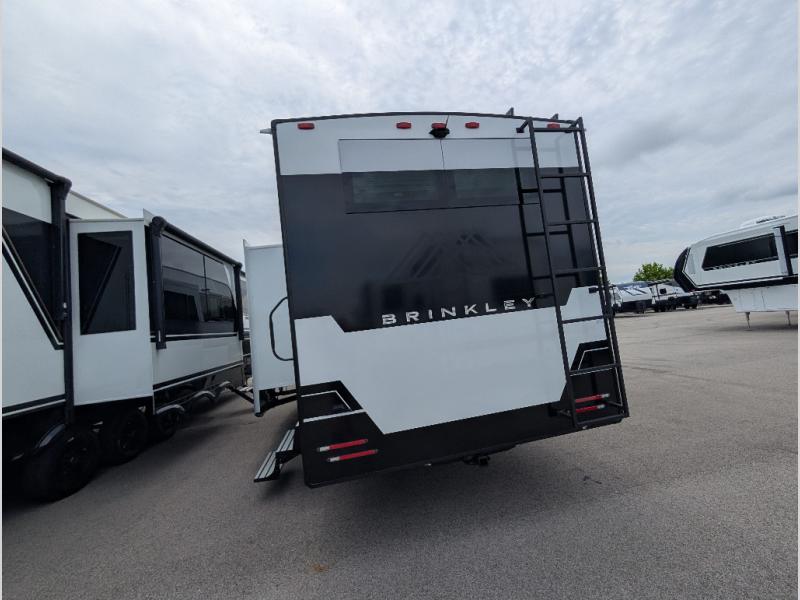 The Brinkley mid-profile Model Z fifth wheels bring you clean lines and an upscale look with plenty of style and exciting new features like the industry first brass plumbing connections. These units also feature an automotive grade front cap, plenty of exterior storage, exterior hot and cold showers, and wide stance leveling jacks for easy set up. Residential frameless windows provide a clean look and beautiful views, and ample electrical outlets and 6 USB/USB-C outlets allow all of your electronics and appliances to easily be used and charged.