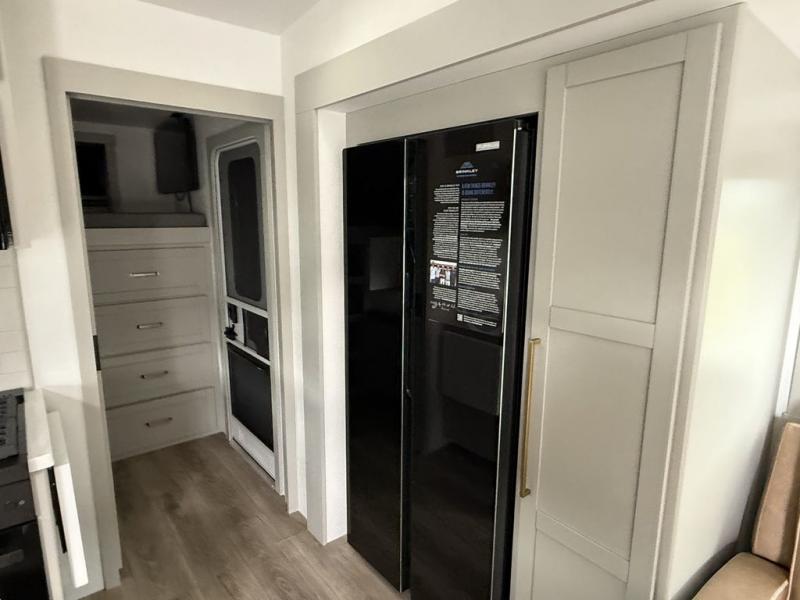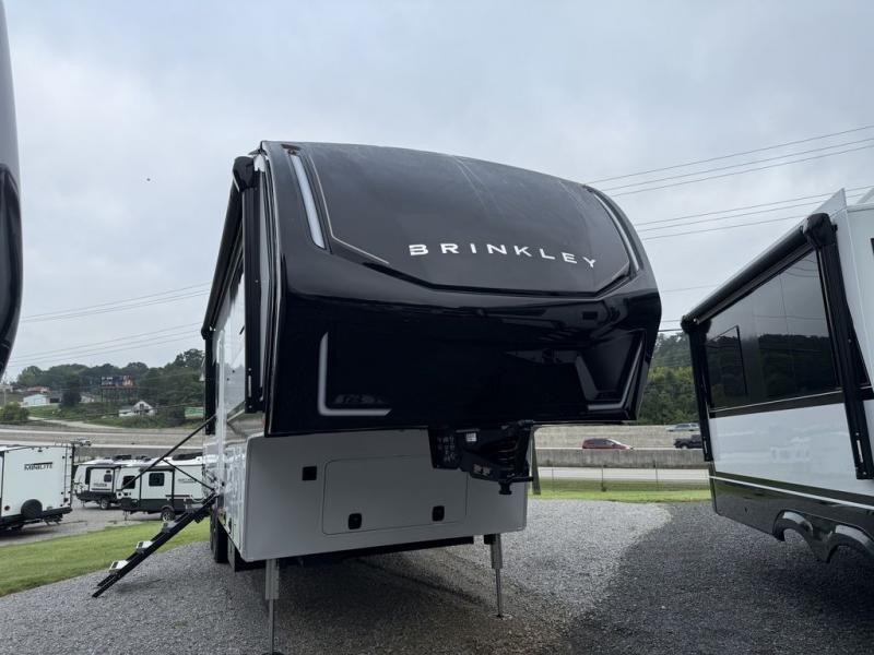 The Brinkley mid-profile Model Z fifth wheels bring you clean lines and an upscale look with plenty of style and exciting new features like the industry first brass plumbing connections. These units also feature an automotive grade front cap, plenty of exterior storage, exterior hot and cold showers, and wide stance leveling jacks for easy set up. Residential frameless windows provide a clean look and beautiful views, and ample electrical outlets and 6 USB/USB-C outlets allow all of your electronics and appliances to easily be used and charged.