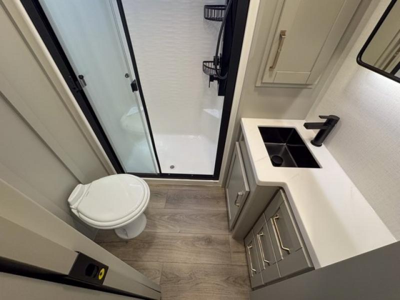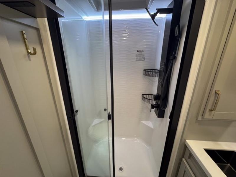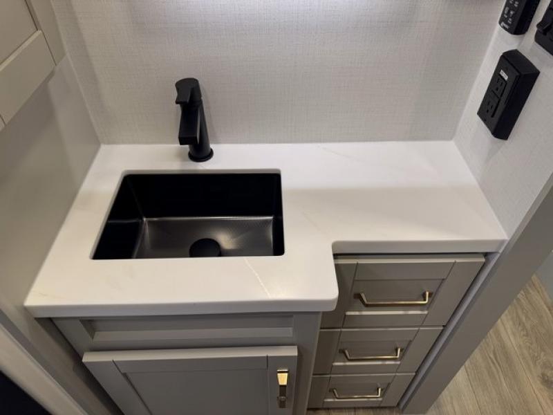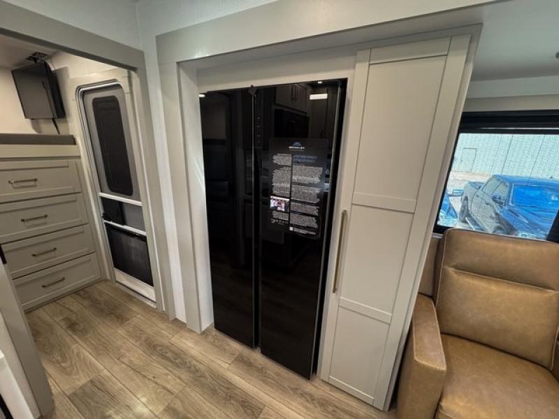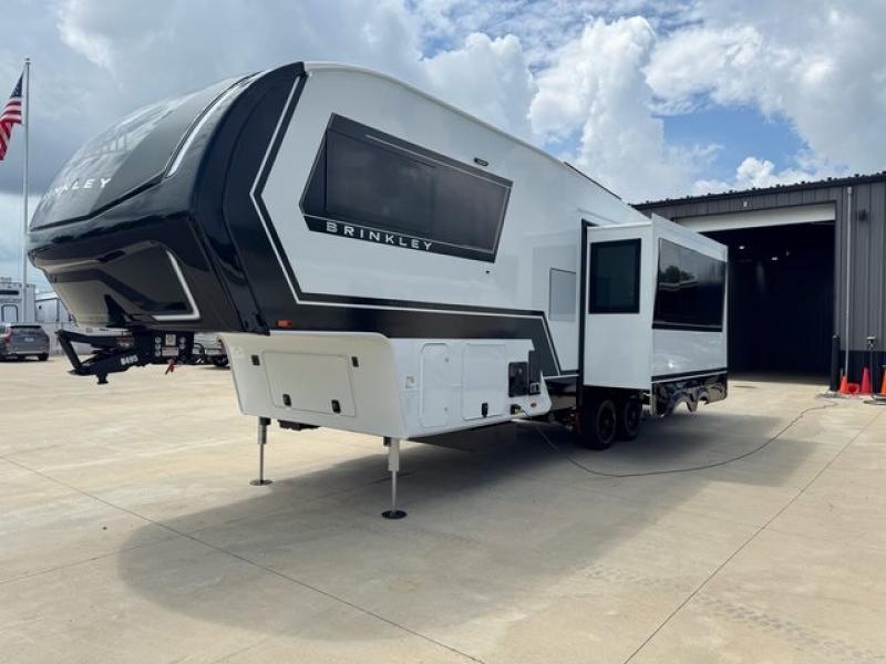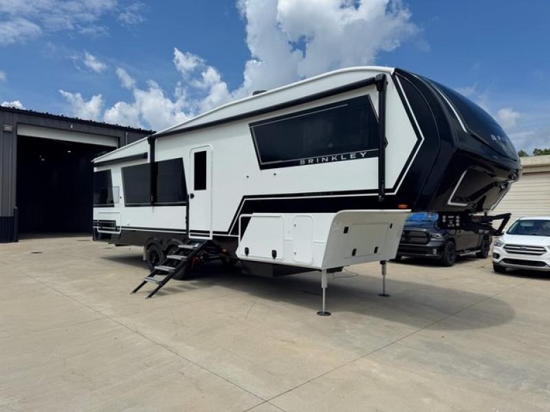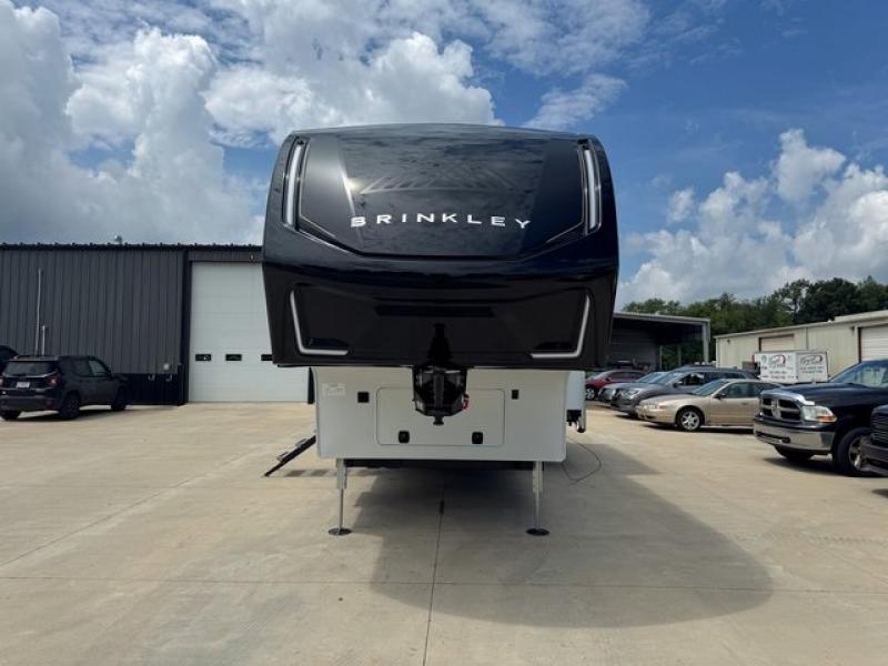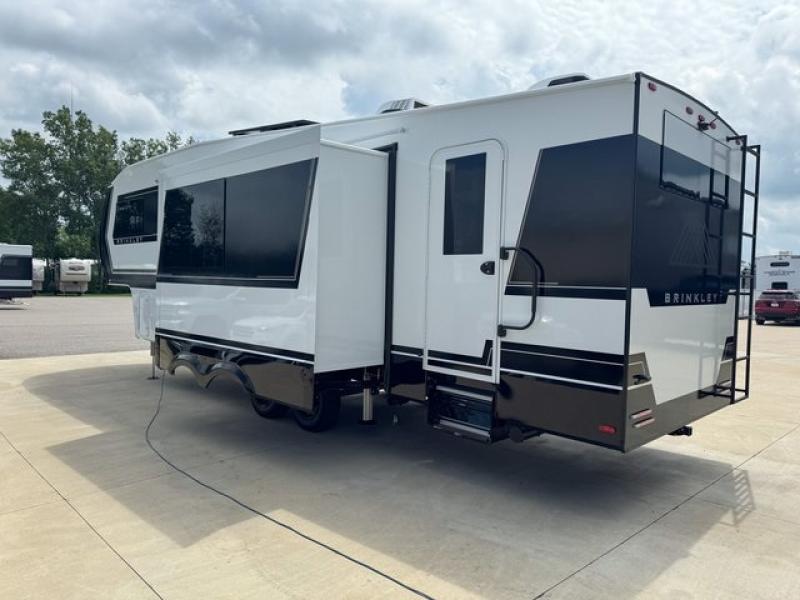 The Brinkley mid-profile Model Z fifth wheels bring you clean lines and an upscale look with plenty of style and exciting new features like the industry first brass plumbing connections. These units also feature an automotive grade front cap, plenty of exterior storage, exterior hot and cold showers, and wide stance leveling jacks for easy set up. Residential frameless windows provide a clean look and beautiful views, and ample electrical outlets and 6 USB/USB-C outlets allow all of your electronics and appliances to easily be used and charged.