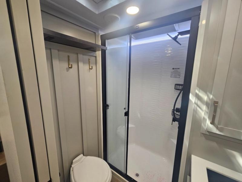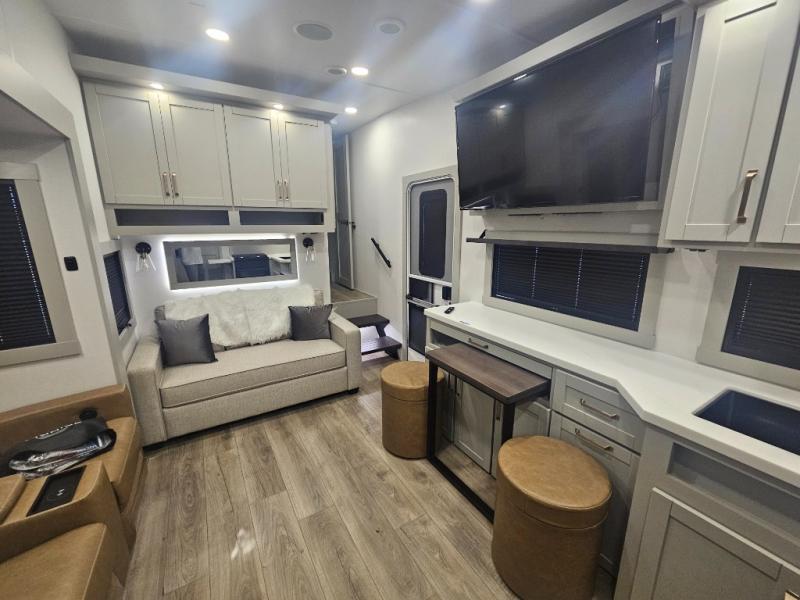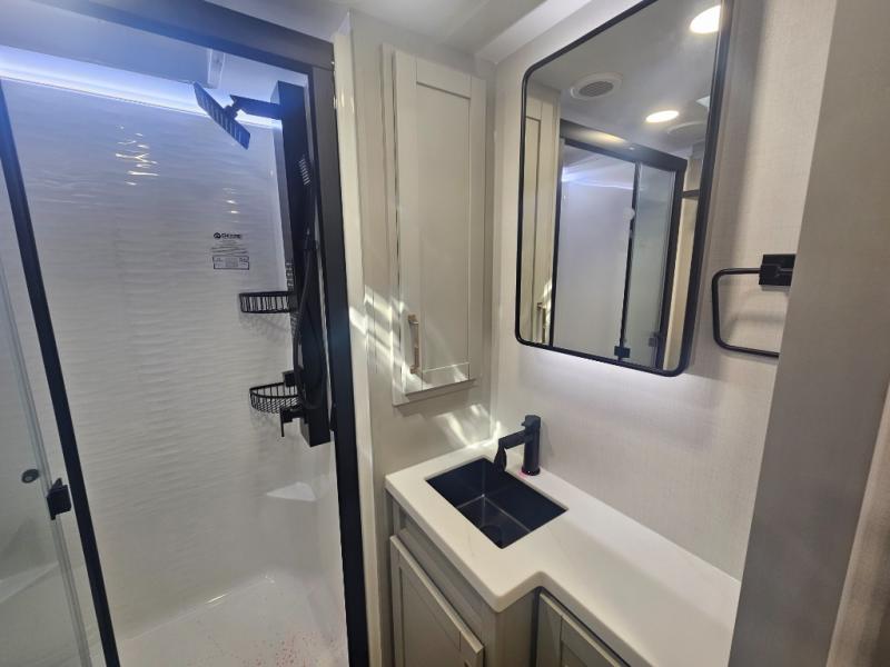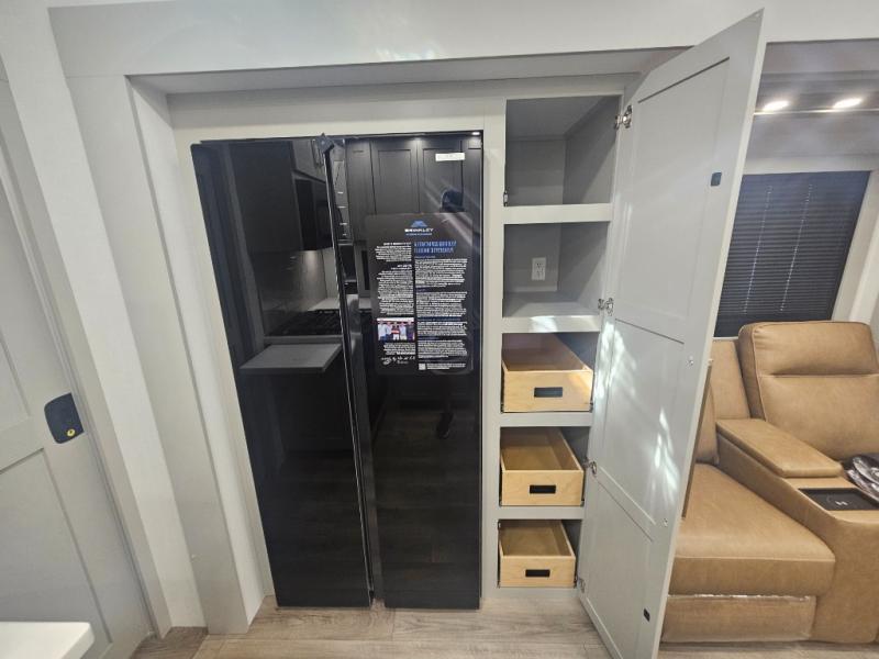 The Brinkley mid-profile Model Z fifth wheels bring you clean lines and an upscale look with plenty of style and exciting new features like the industry first brass plumbing connections. These units also feature an automotive grade front cap, plenty of exterior storage, exterior hot and cold showers, and wide stance leveling jacks for easy set up. Residential frameless windows provide a clean look and beautiful views, and ample electrical outlets and 6 USB/USB-C outlets allow all of your electronics and appliances to easily be used and charged.