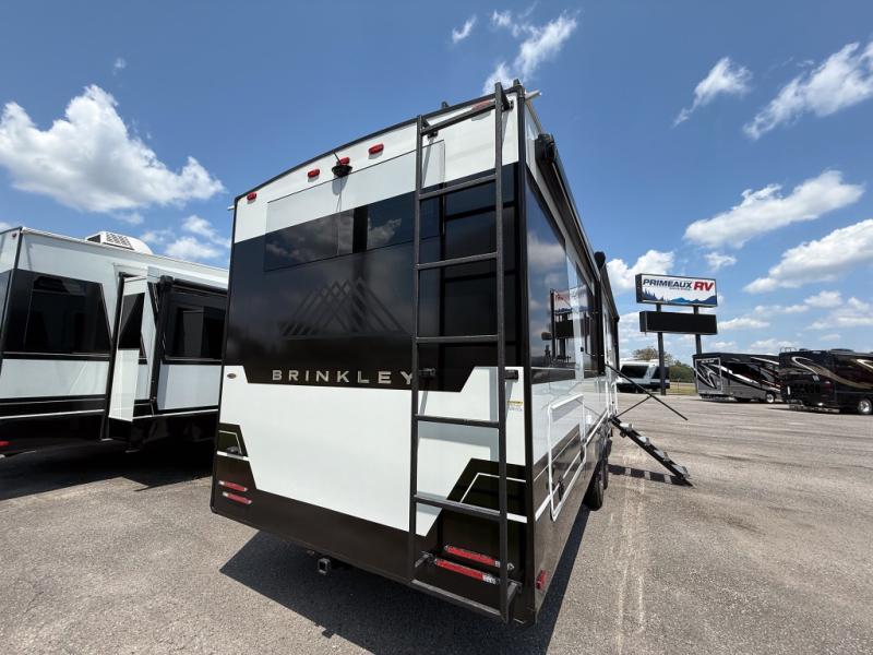 The Brinkley mid-profile Model Z fifth wheels bring you clean lines and an upscale look with plenty of style and exciting new features like the industry first brass plumbing connections. These units also feature an automotive grade front cap, plenty of exterior storage, exterior hot and cold showers, and wide stance leveling jacks for easy set up. Residential frameless windows provide a clean look and beautiful views, and ample electrical outlets and 6 USB/USB-C outlets allow all of your electronics and appliances to easily be used and charged.