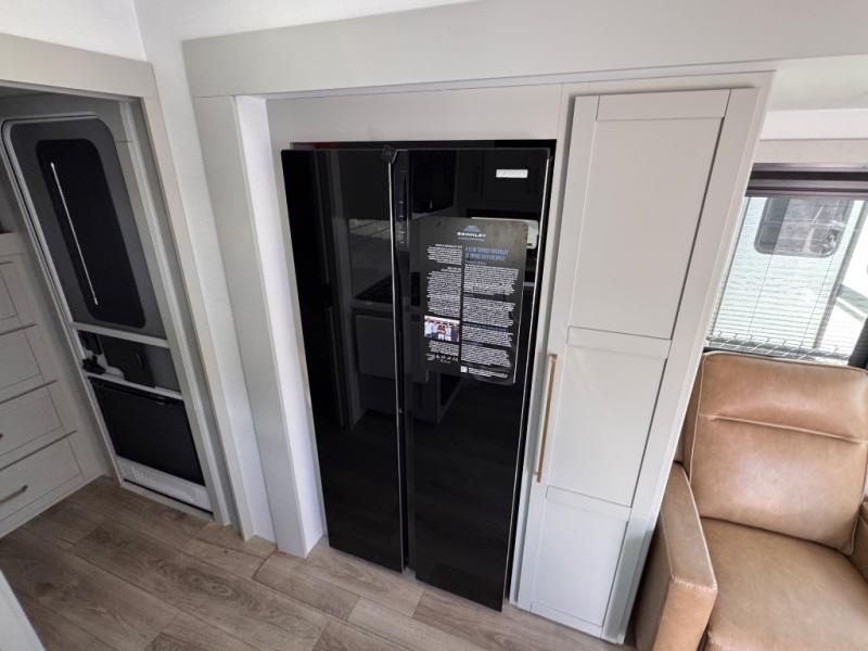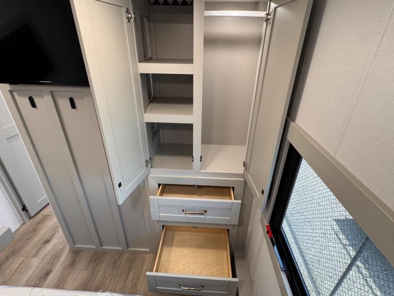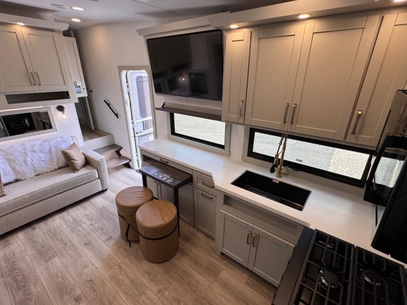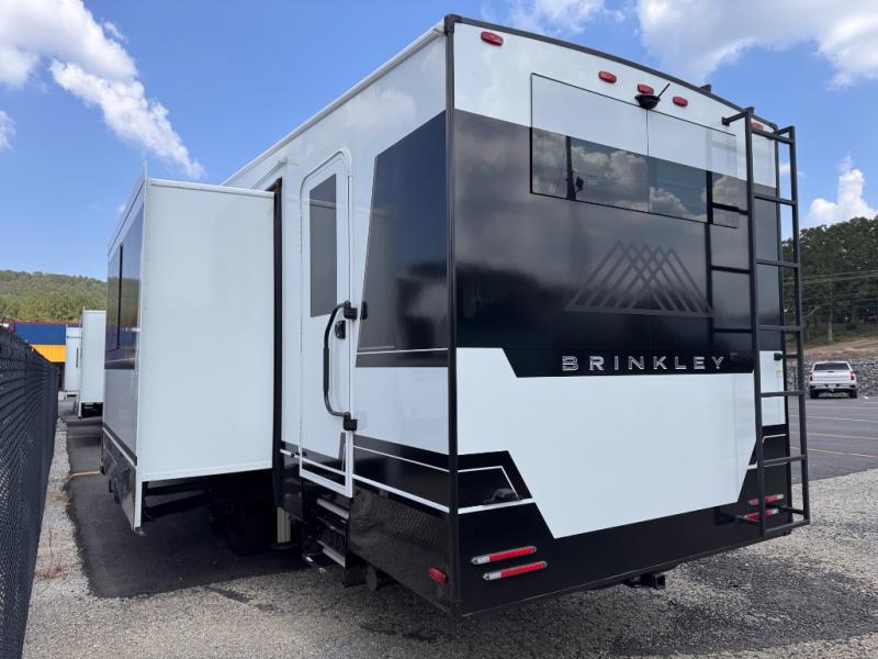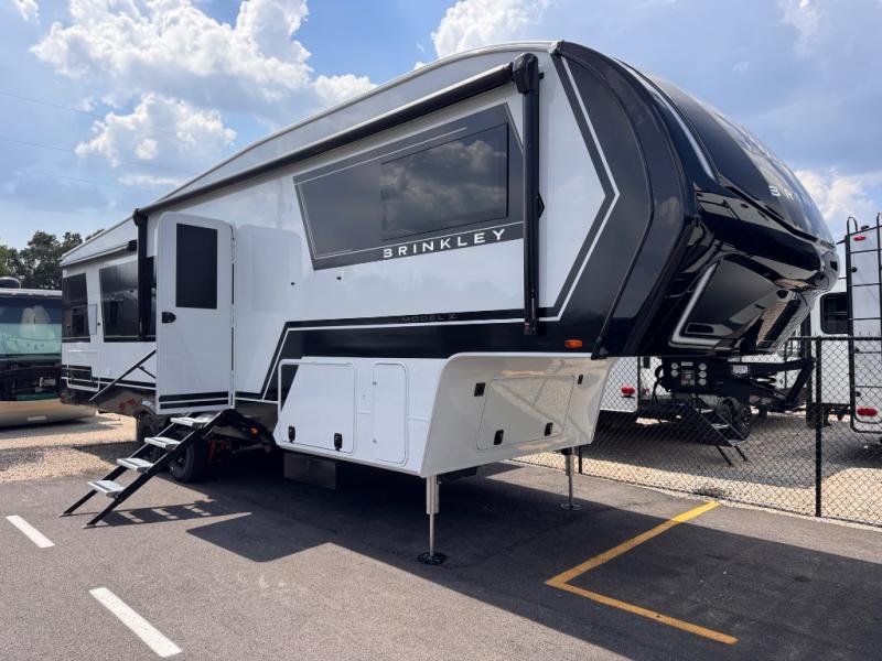 The Brinkley mid-profile Model Z fifth wheels bring you clean lines and an upscale look with plenty of style and exciting new features like the industry first brass plumbing connections. These units also feature an automotive grade front cap, plenty of exterior storage, exterior hot and cold showers, and wide stance leveling jacks for easy set up. Residential frameless windows provide a clean look and beautiful views, and ample electrical outlets and 6 USB/USB-C outlets allow all of your electronics and appliances to easily be used and charged.