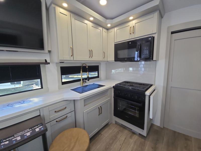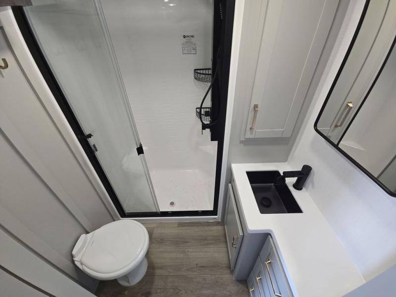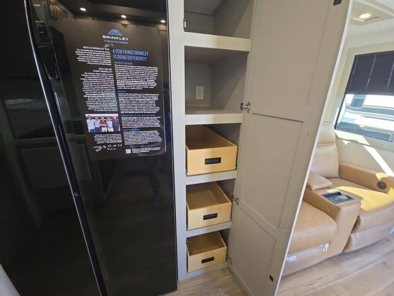 The Brinkley mid-profile Model Z fifth wheels bring you clean lines and an upscale look with plenty of style and exciting new features like the industry first brass plumbing connections. These units also feature an automotive grade front cap, plenty of exterior storage, exterior hot and cold showers, and wide stance leveling jacks for easy set up. Residential frameless windows provide a clean look and beautiful views, and ample electrical outlets and 6 USB/USB-C outlets allow all of your electronics and appliances to easily be used and charged.
