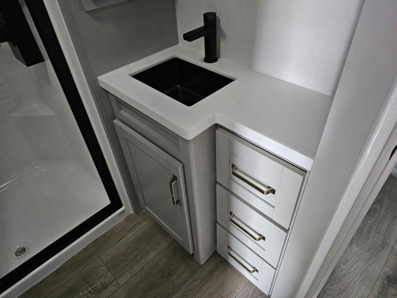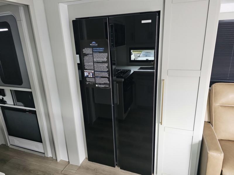 The Brinkley mid-profile Model Z fifth wheels bring you clean lines and an upscale look with plenty of style and exciting new features like the industry first brass plumbing connections. These units also feature an automotive grade front cap, plenty of exterior storage, exterior hot and cold showers, and wide stance leveling jacks for easy set up. Residential frameless windows provide a clean look and beautiful views, and ample electrical outlets and 6 USB/USB-C outlets allow all of your electronics and appliances to easily be used and charged.