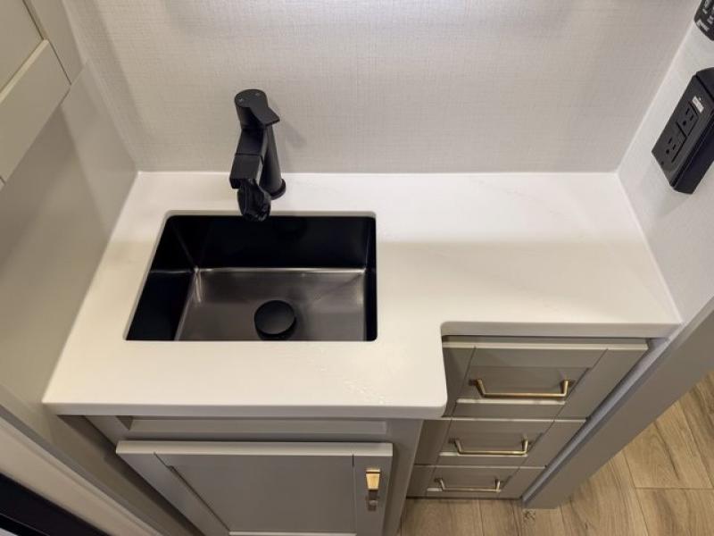 The Brinkley mid-profile Model Z fifth wheels bring you clean lines and an upscale look with plenty of style and exciting new features like the industry first brass plumbing connections. These units also feature an automotive grade front cap, plenty of exterior storage, exterior hot and cold showers, and wide stance leveling jacks for easy set up. Residential frameless windows provide a clean look and beautiful views, and ample electrical outlets and 6 USB/USB-C outlets allow all of your electronics and appliances to easily be used and charged.